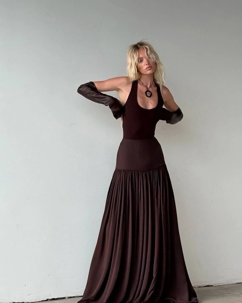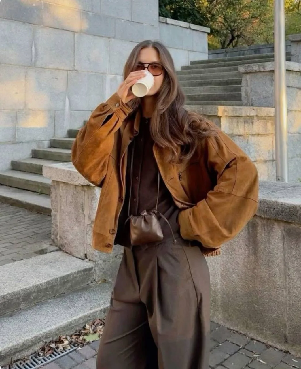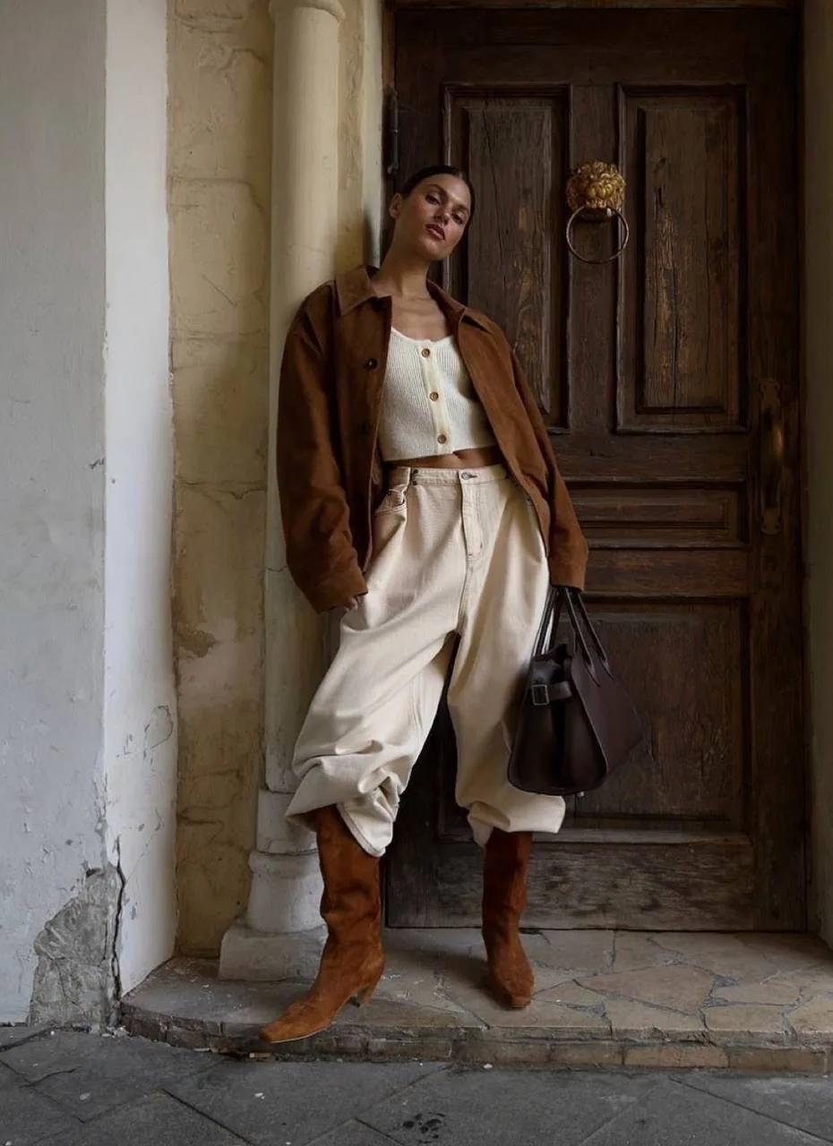 А горький шоколад — это отличный выбор для создания выразительного акцента. Сумки, обувь или даже пальто в этом цвете добавляют глубины любому наряду.