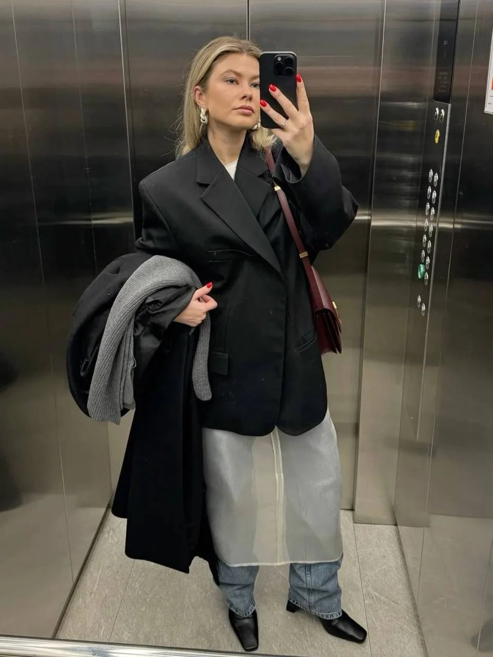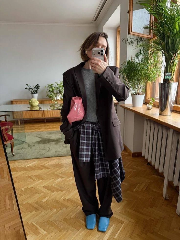 У меня есть четкое ощущение, что оверсайз с нами останется примерно навсегда. Огромные пиджаки, свободные свитшоты, футболки — продолжаем их покупать, миксовать с джинсами, юбками, шелковыми платьями, и каждый раз получается то самое «неслучайно небрежное» сочетание. В этом и есть секрет безумной любви: оверсайз добавляет образу расслабленности, но при этом всегда выглядит четко и стильно.