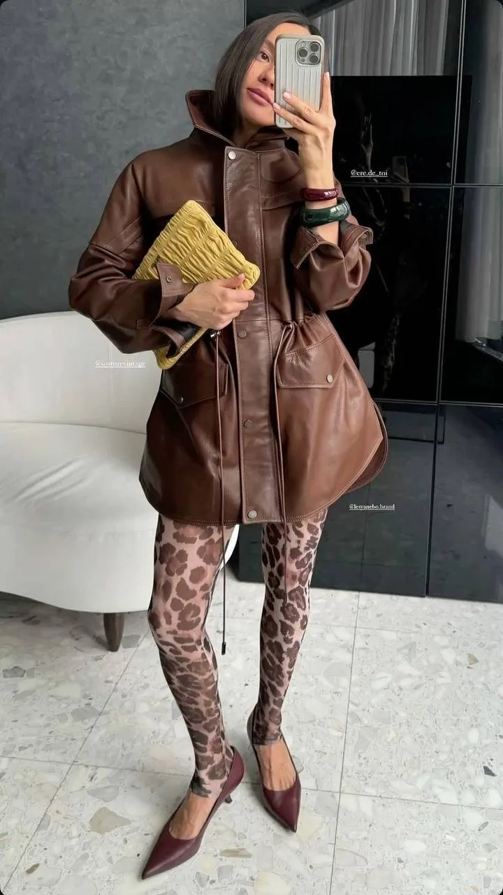 Комбинируйте кожаные куртки с мягкими свитерами, а юбки или брюки из кожи идеально подойдут для создания повседневного образа. Не забывайте о стильных аксессуарах — кожаные ботильоны и сумки станут отличным завершение.