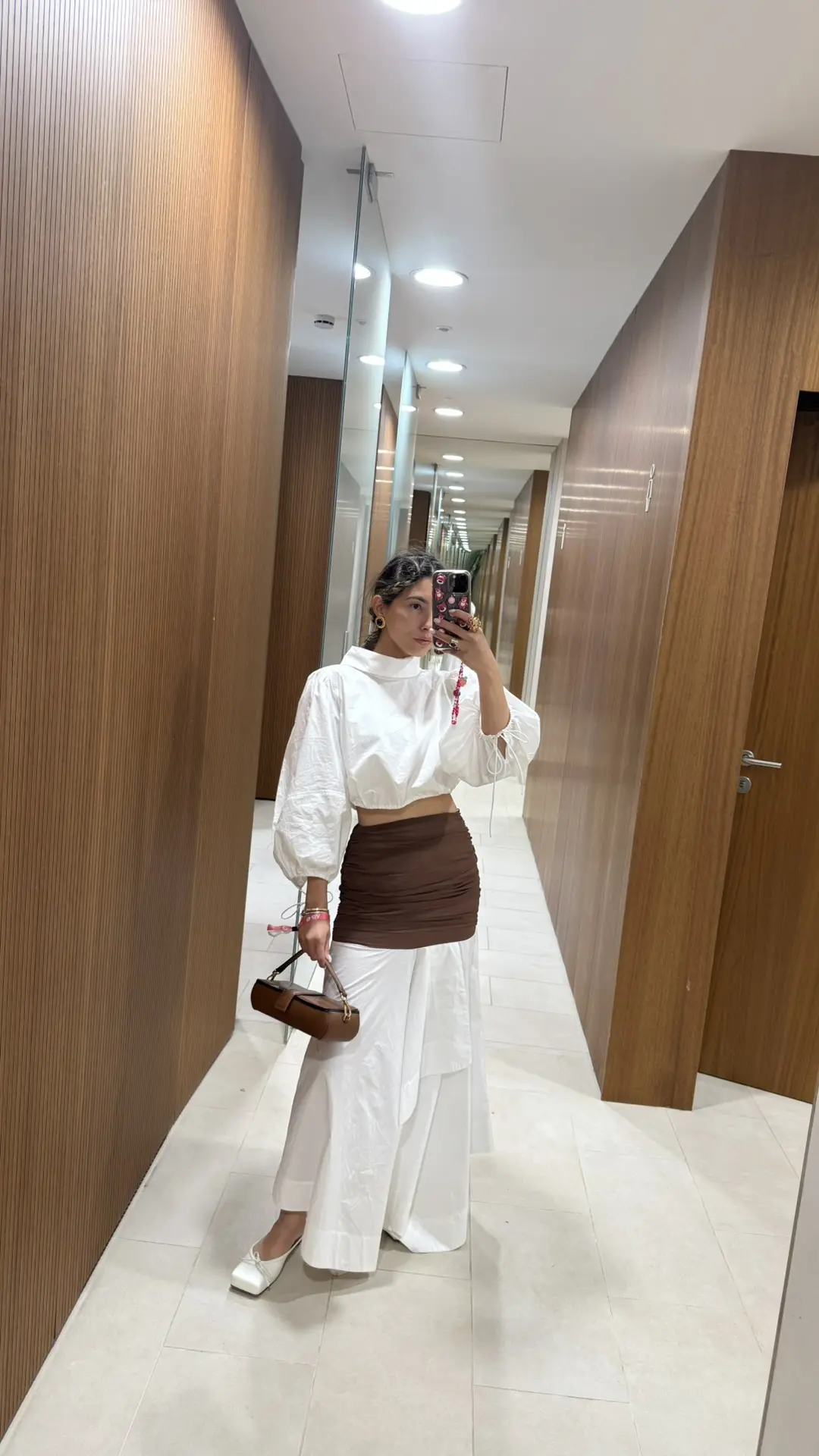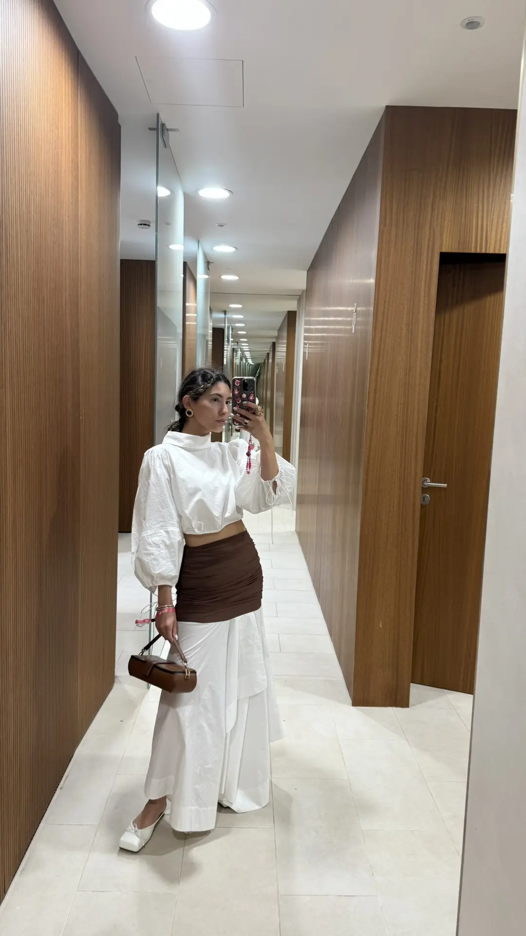 Для завершения образа я бы добавила несколько акцентов: легкие украшения, например, пусеты, которые подчеркнут женственность, не отвлекая от основного наряда. Волосы можно оставить распущенными с легкими волнами или собрать в небрежный пучок, чтобы добавить игривости и легкости.