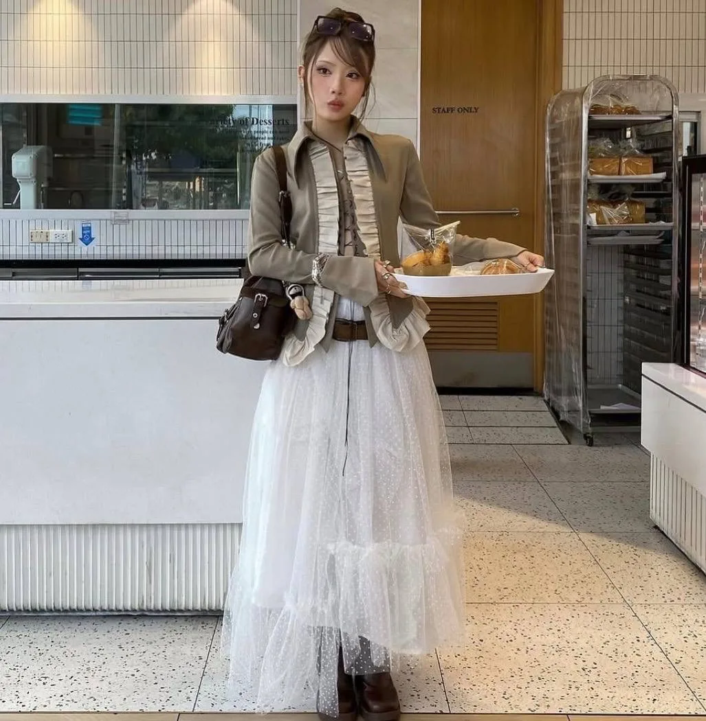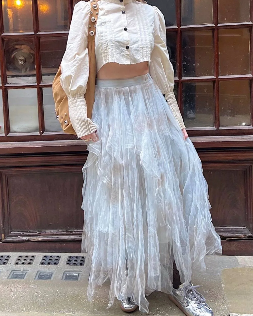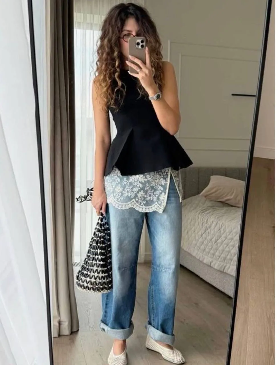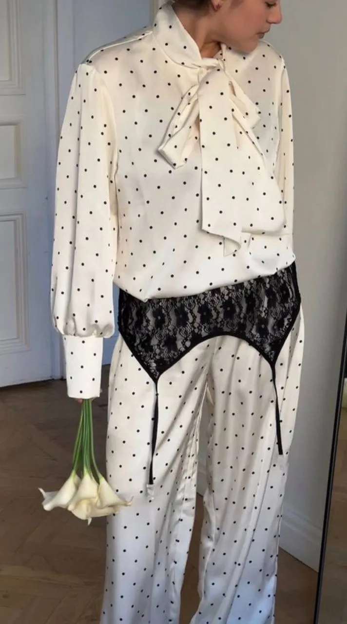 Блузка в стиле современной принцессы — это элемент, который превращает обычный день в особенный. Я обожаю, когда блузка становится центром образа. Это может быть мягкий шелк, который струится, или невесомое кружево с ноткой загадочности. Особенный шарм придают детали: пышные рукава, создающие величественный силуэт, или высокий воротник с изящным бантом, который выглядит как королевский акцент.