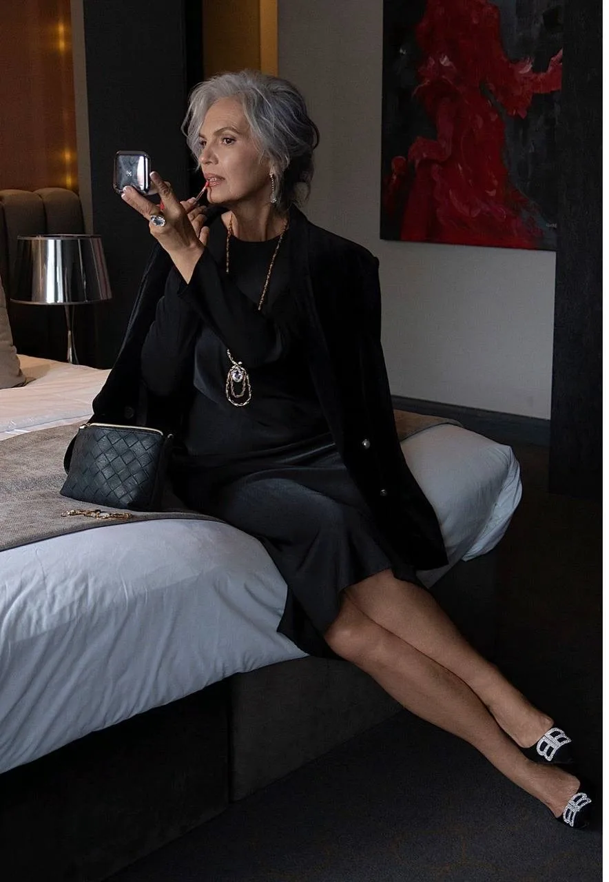 Идеальный вечерний выход — это безупречные фактуры: шелк, кашемир или идеально скроенный смокинг. Это эстетика, где каждая деталь — от лаконичных украшений до благородной осанки — говорит о внутренней силе и спокойствии. Истинный шарм не имеет возраста, он только раскрывается с годами, становясь глубже и притягательнее.