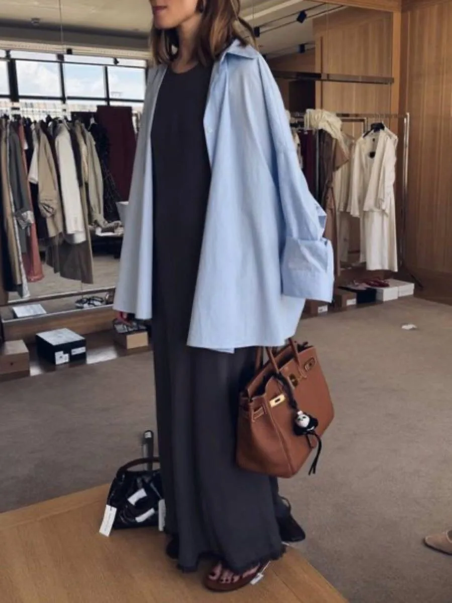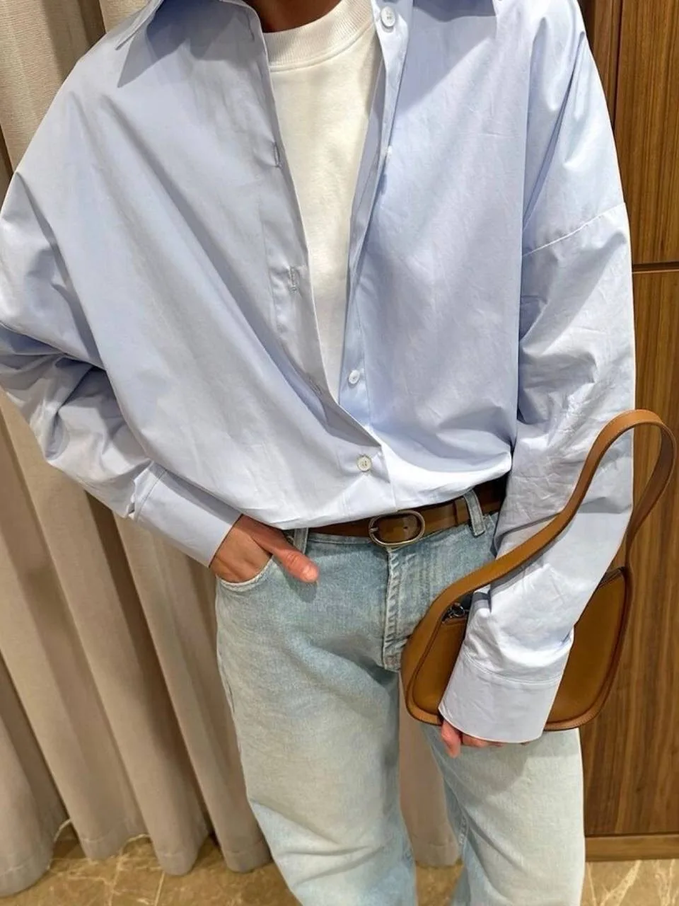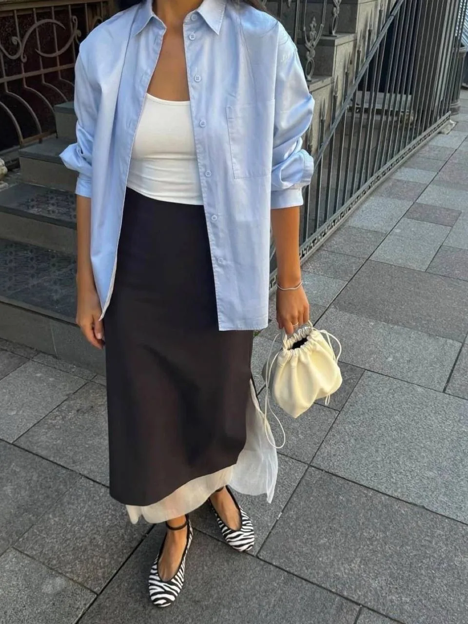 Рубашка вторым слоем — это самый простой способ сделать образ сложнее и интереснее. Она мгновенно убирает излишнюю строгость и добавляет расслабленность, которой часто не хватает базовым вещам.