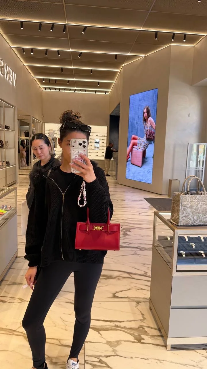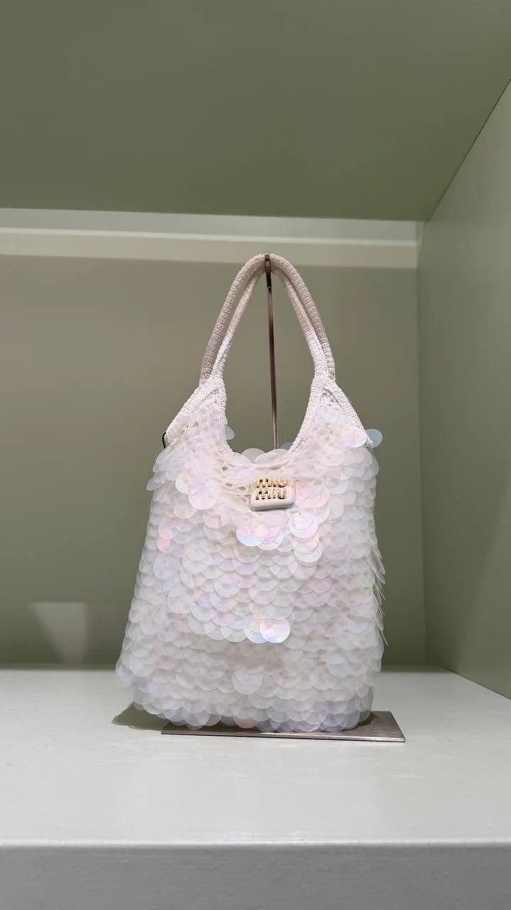 И очень понравилась сумка MIU MIU, ведь сейчас сумки и одежда из крупных пайеток дикий тренд.