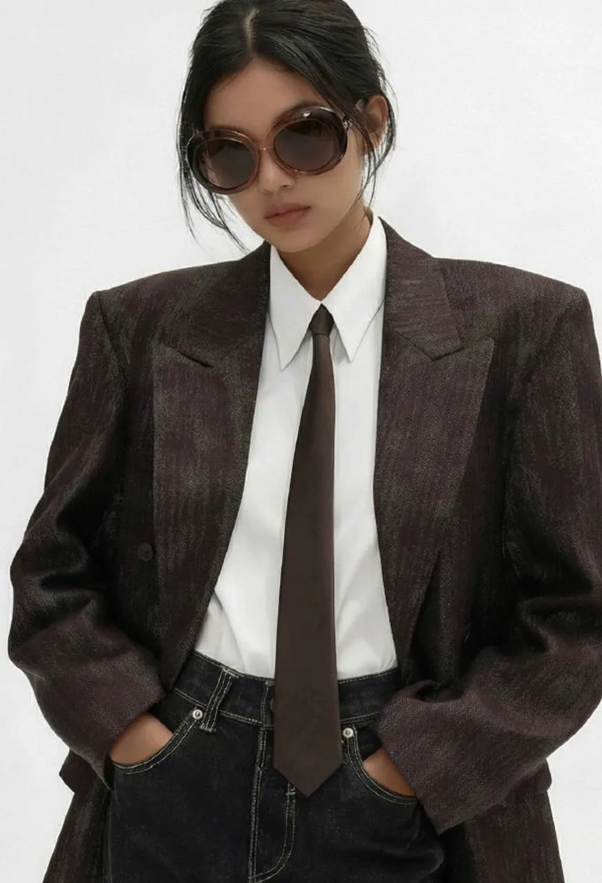 В 2026 году она окончательно вышла за пределы офисного дресс-кода, став «новым белым». Она освежает лицо лучше любого хайлайтера и придает образу ту самую интеллектуальную эстетику, которая сейчас на пике.