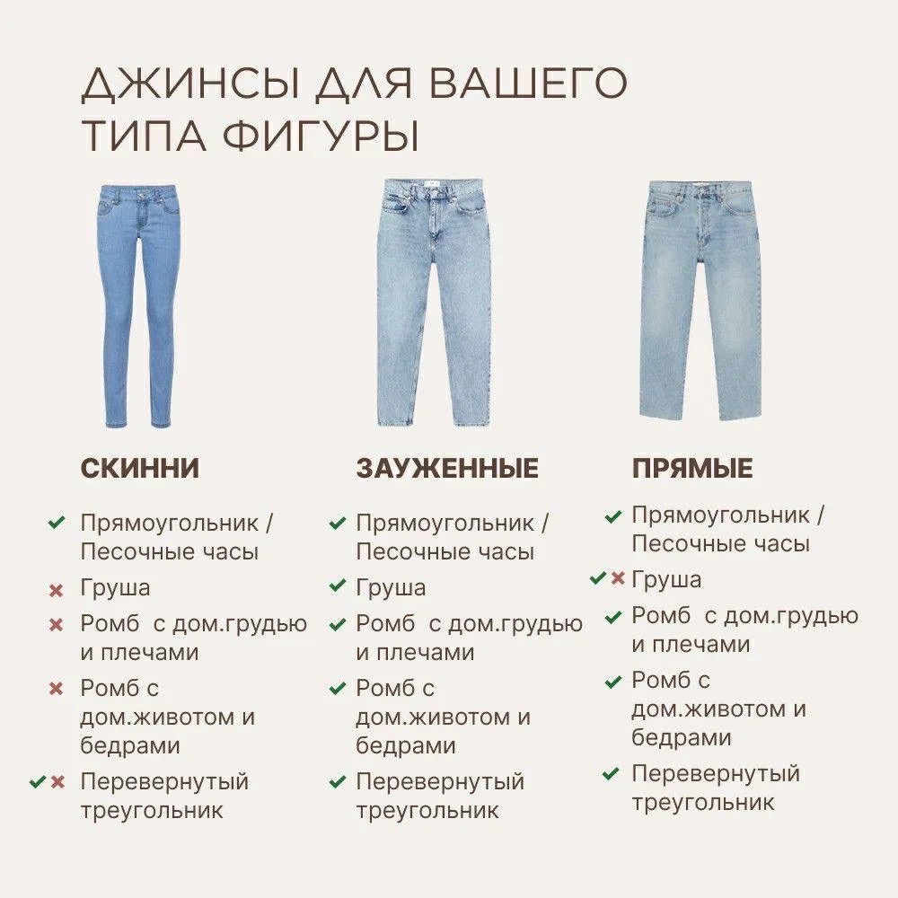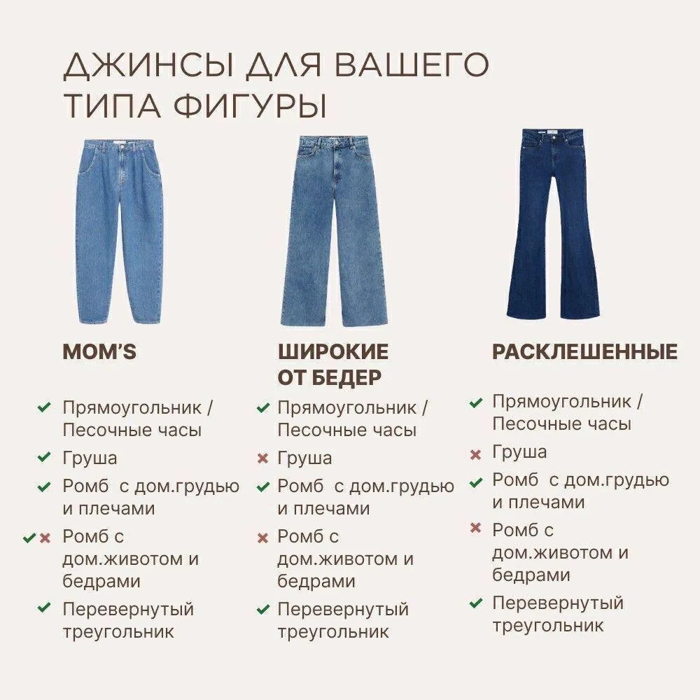Девочки, нашла очень классную подробную шпаргалку, с помощью которой вы точно сможете понять, какие виды джинсов будут идеально сидеть на вашей фигуре. Ловите⬆️