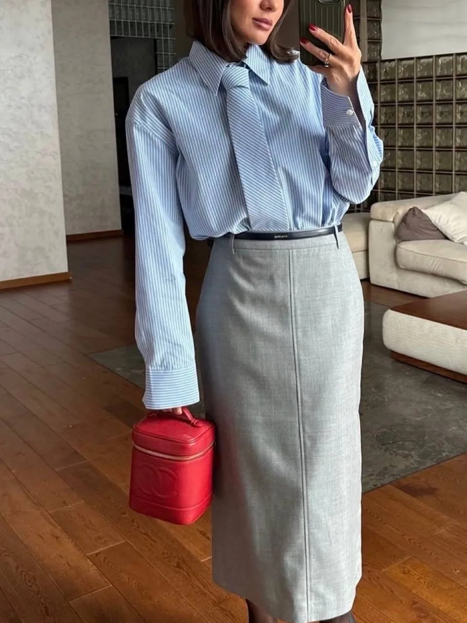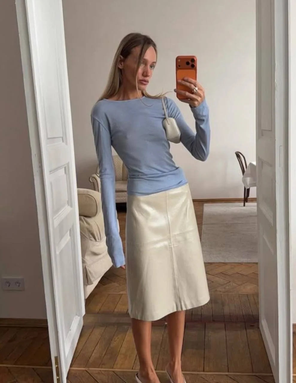 Настоящий шик сейчас — это лаконичность. Вместо того чтобы кутаться в слои ткани, лучше сделать ставку на архитектурный крой. Плотная юбка-карандаш, которая мягко обрисовывает бедра, или летящий шелк, подчеркивающий походку, работают лучше любых ухищрений.