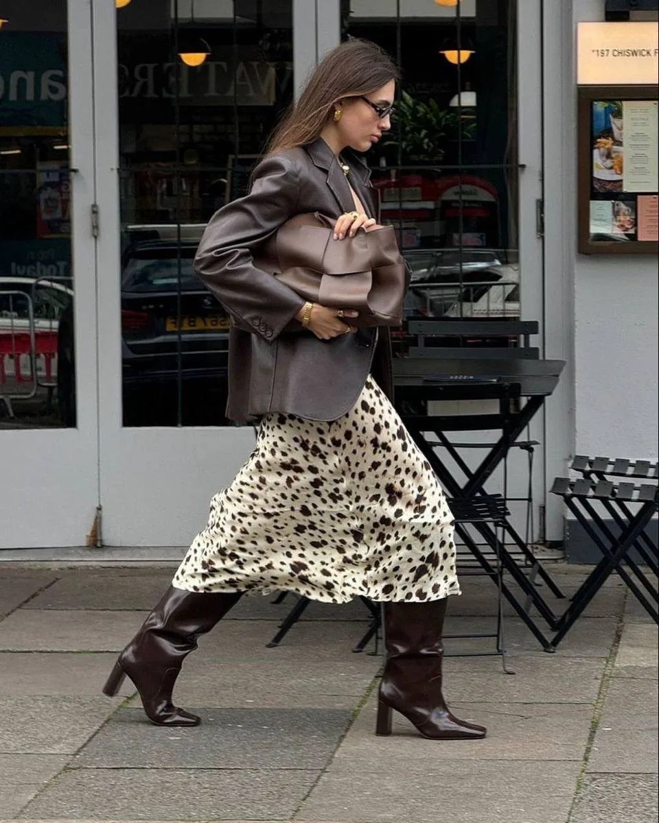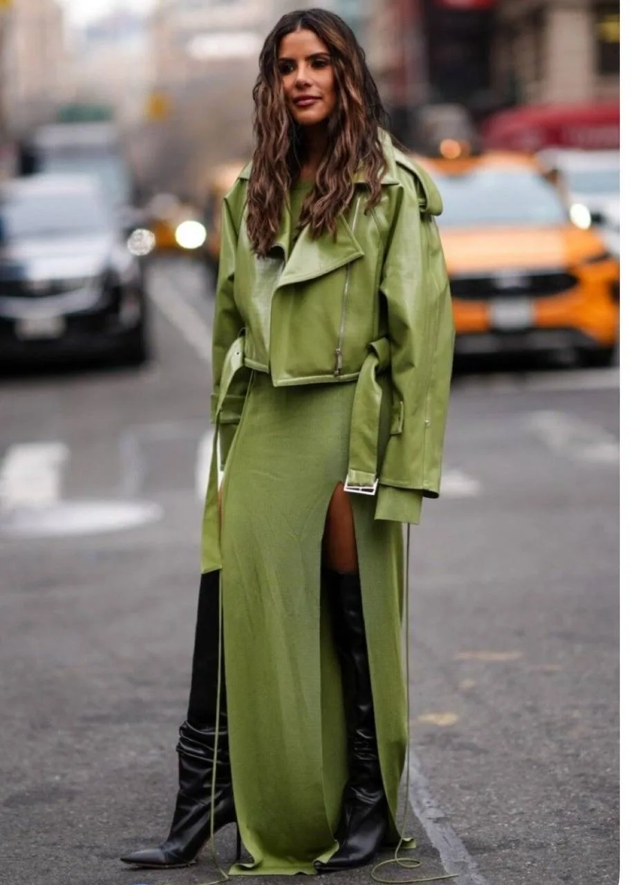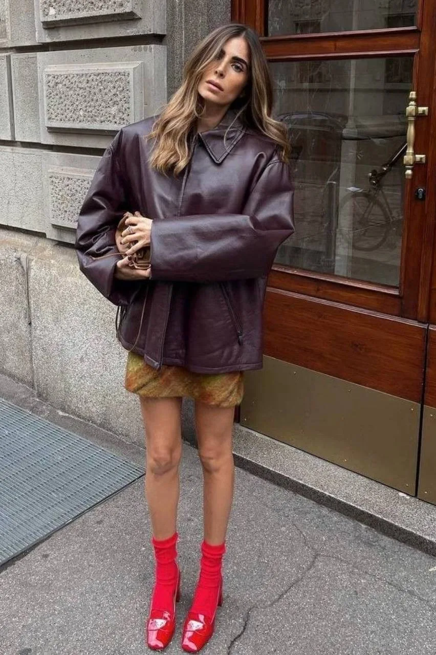 Смело экспериментируйте с текстурами и цветами, ведь кожа — это не только классика😉