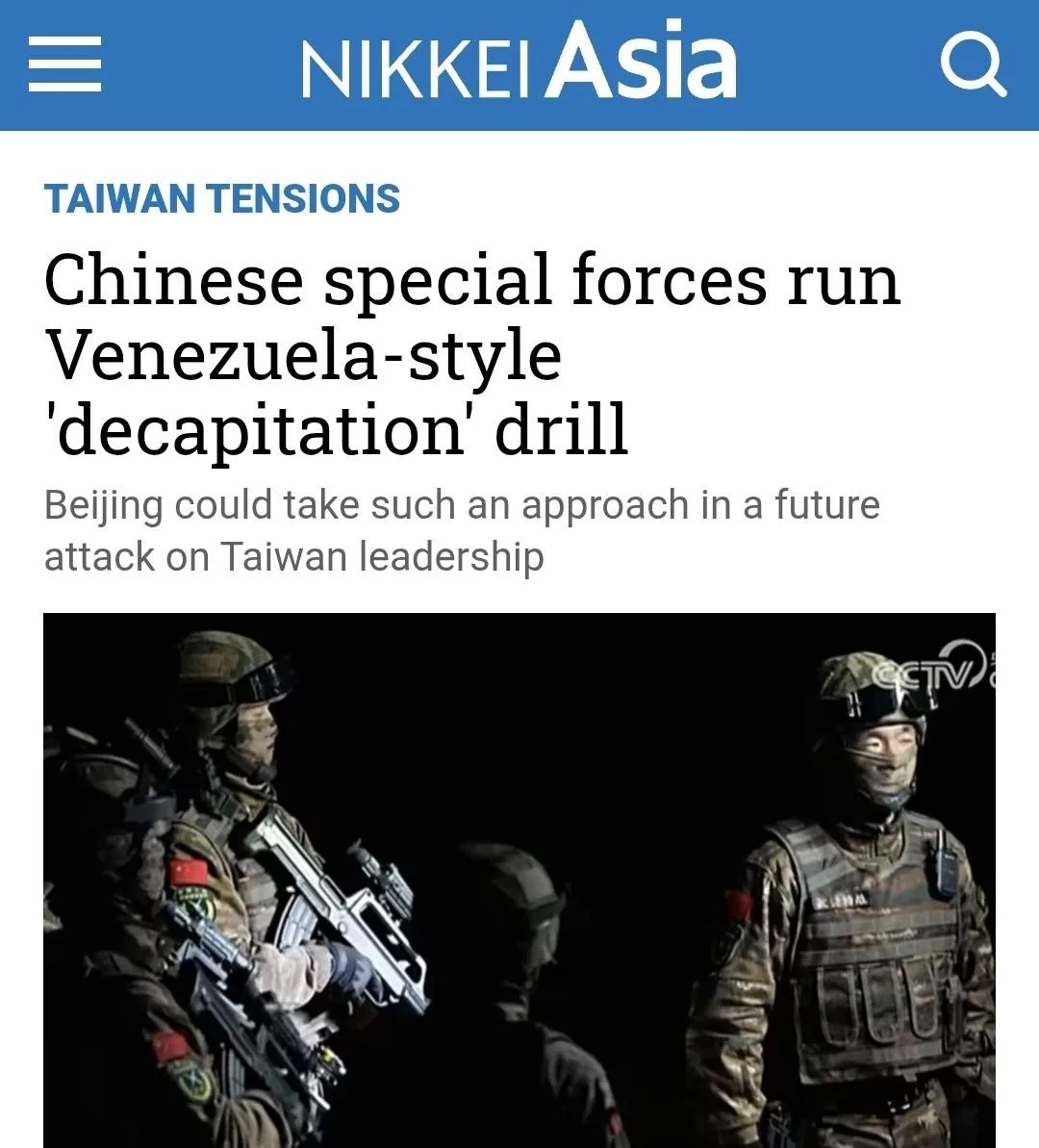 ⚡️Китай отрабатывает сценарий операции против Тайваня в стиле похищения Мадуро, — Nikkei Asia.