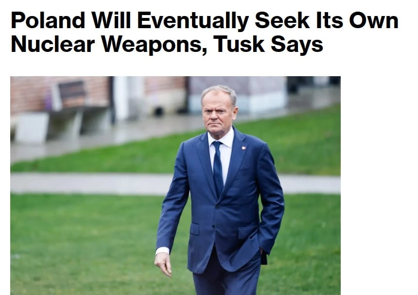 ⚡️Польша будет стремиться к созданию собственного ядерного оружия, — премьер Польши Туск.