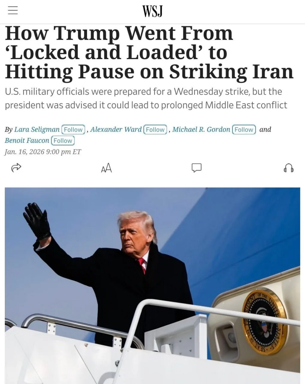 ⚡️Трамп готовился нанести удар по Ирану, но изменил решение из-за множества возражений, — The Wall Street Journal.