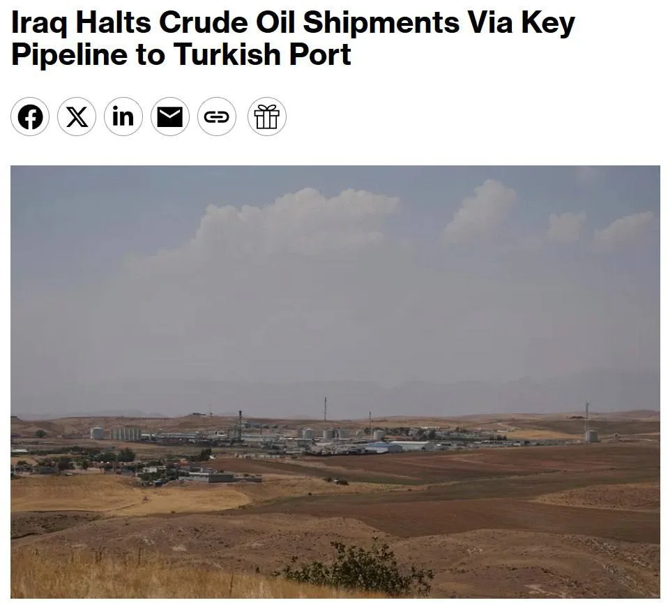 ⚡️Ирак остановил экспорт нефти по ключевому трубопроводу в Турцию, — Bloomberg.