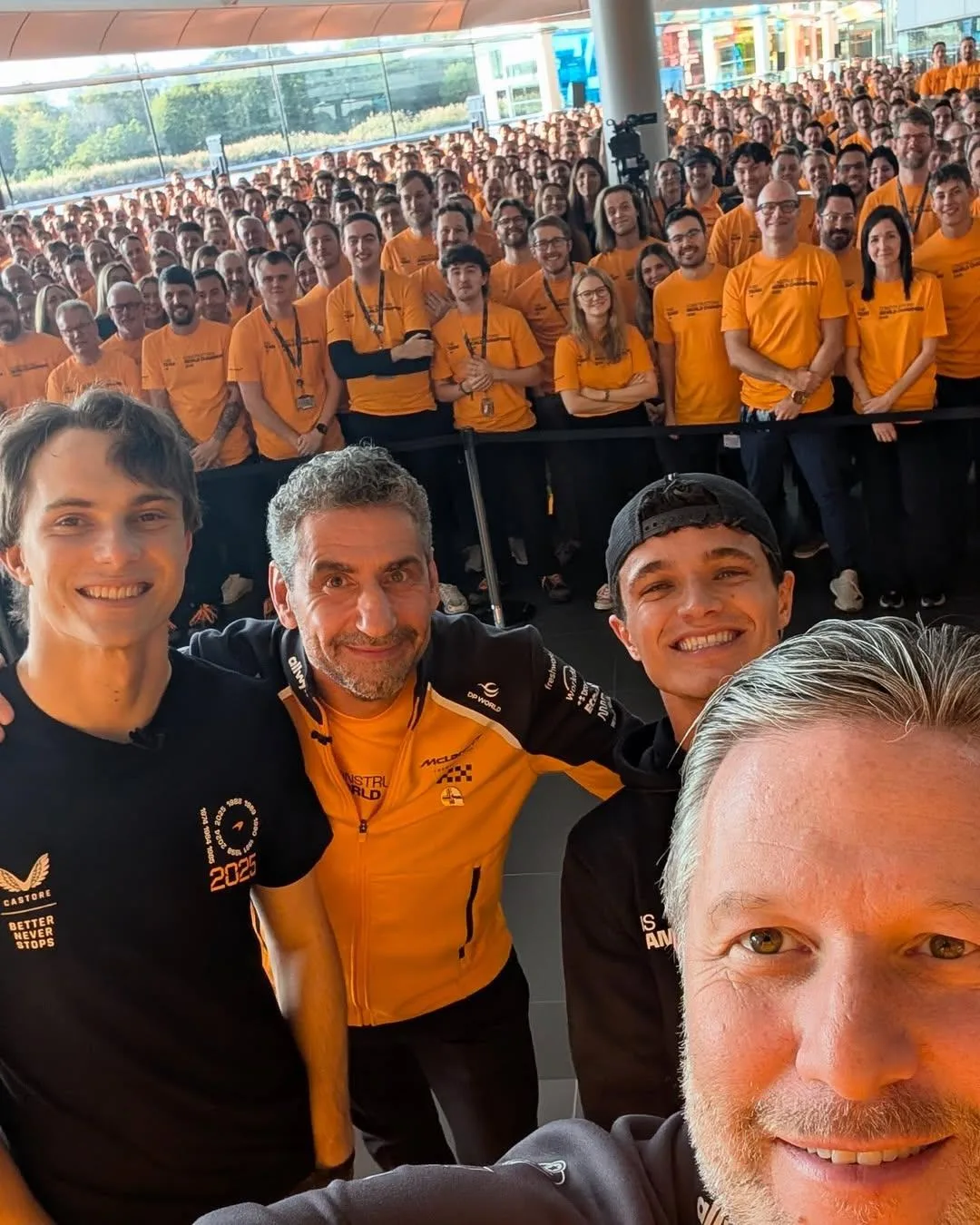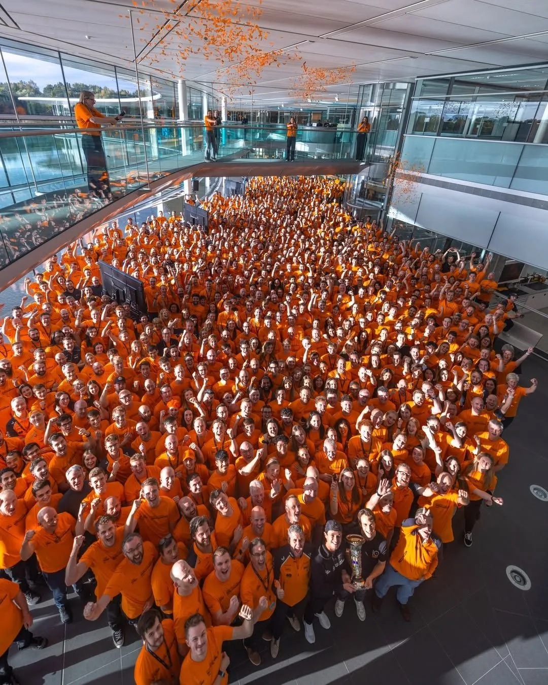 Празднование завоевания Кубка конструкторов в техцентре МакЛарен с рабочим коллективом команды.