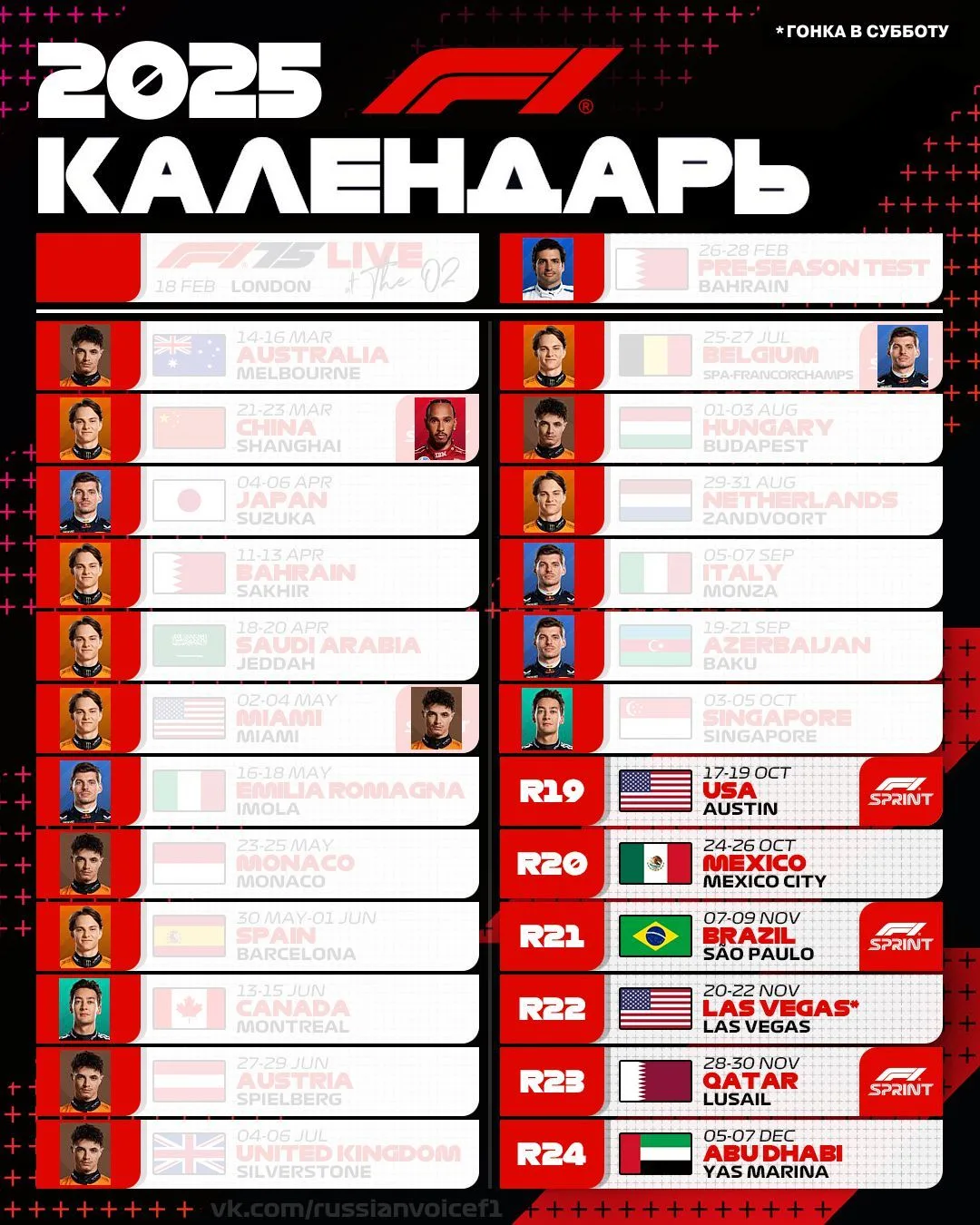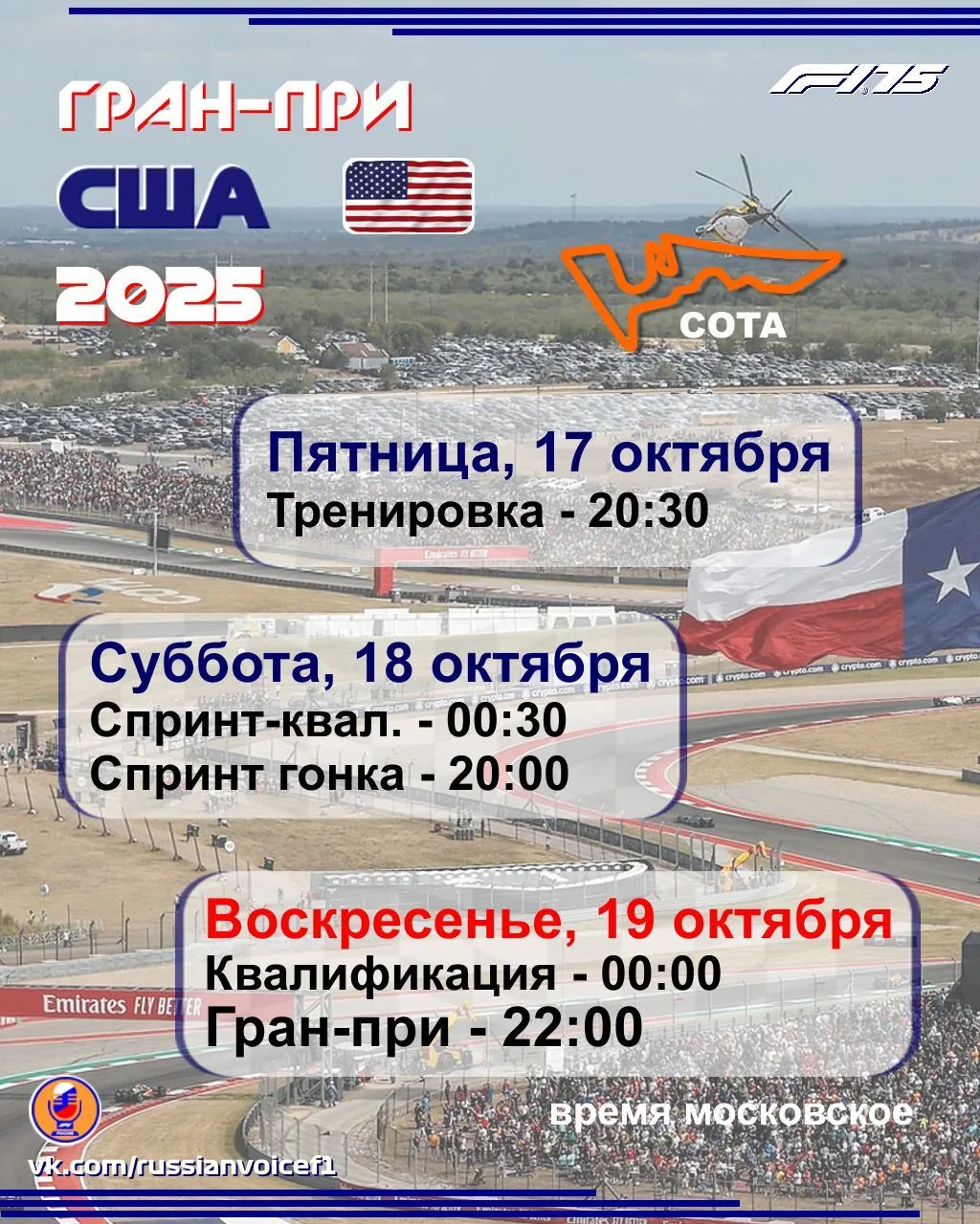 Расписание сессий на Гран-при США 2025. Формула-1.