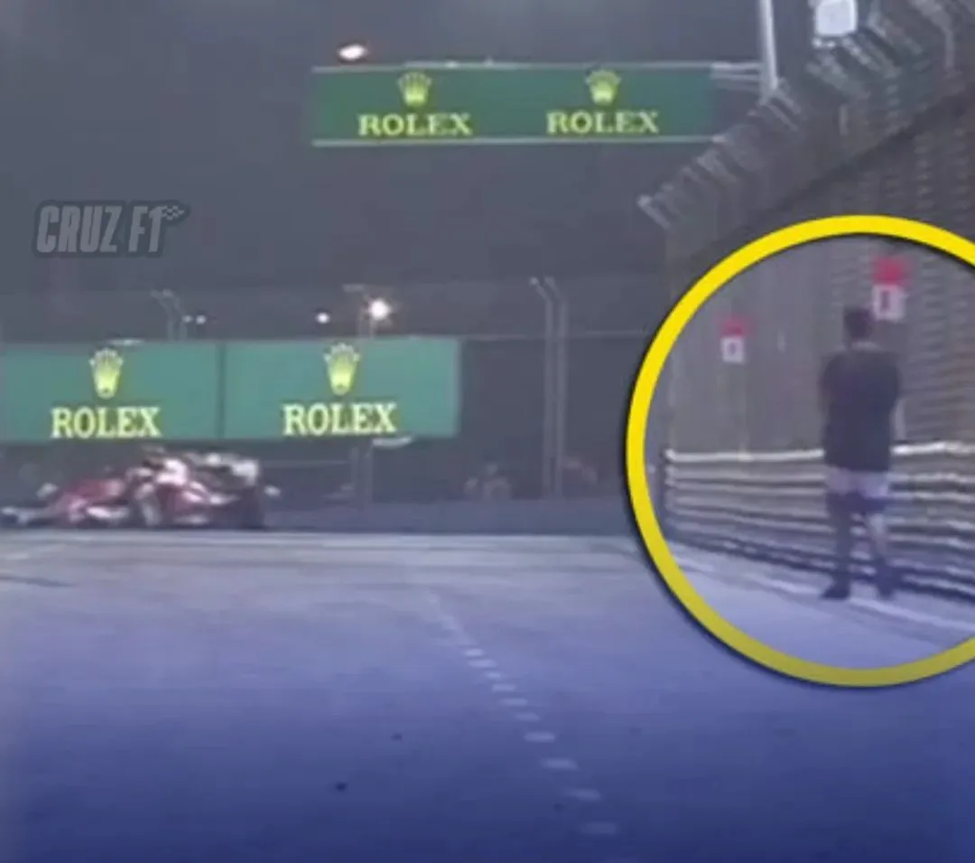 Болельщик на Гран-при Сингапура погулял по трассе во время гонки... И такое на Марина-Бей уже не в первый раз.