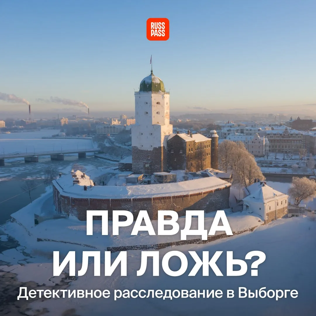 ⚡️ Внимание: запускаем детективную игру! Мы слегка… приукрасили реальность. Ваша задача — как у Шерлока Холмса — найти несоответствие. Перед вами — три факта про город Выборг в Ленинградской области, два из которых — стопроцентная правда, а один является выдумкой. Попробуйте отгадать без помощи интернета.