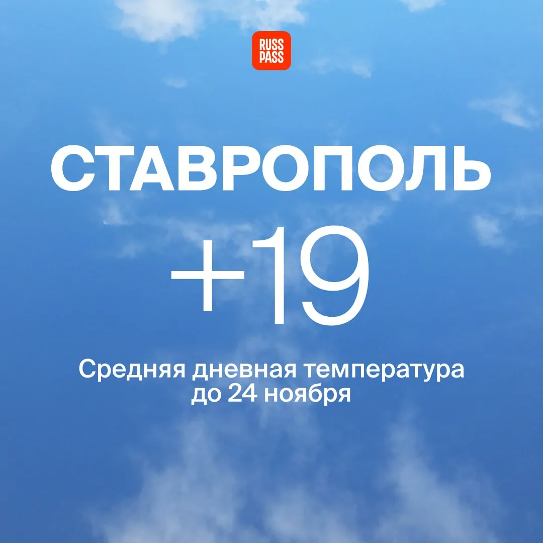 🌤 Ставрополь уверенно выстраивает границы в отношениях с ноябрем и всю неделю держит курс на 19 градусов тепла! Начиная со вторника он все-таки покажет жителям и туристам настоящую осень, а пока можно успеть посмотреть на самый романтичный город Северного Кавказа (по версии RUSSPASS Журнала) с его Таманским лесом и присутственными местами в лучах по-настоящему летнего солнца!