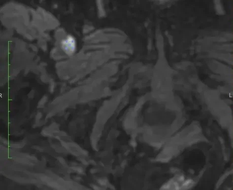 Очень хорошо тромб видно на диффузии при переводе поперечных изображений во фронтальную плоскость и построению проекции максимальной интенсивности, на видео в самом конце.