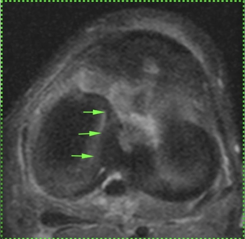 Хороший пример того, что не все то, что блестит на диффузии, является опухолью, гноем или ещё чем-то клеточным, иногда это просто вязкий, плотный тромб.