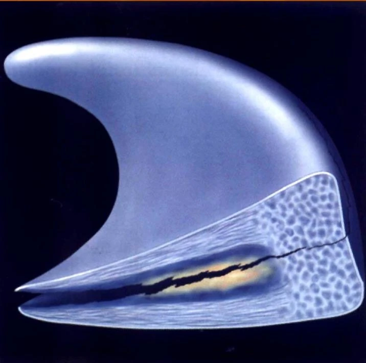 По классификации разрыв такой относится к продольным (потому что капсулярный полукруглый край мениска считается, типа, продольной осью мениска почему-то и поэтому разрывы, параллельные этому краю, называются продольными вертикальными, в отличие от поперечных (которые пересекают мениск от суставного края до капсулярного) и продольных горизонтальных, которые похожи на птичий клюв, но не попугая (это особый тип разрыва мениска, кривой, как турецкая сабля клюв попугая).
