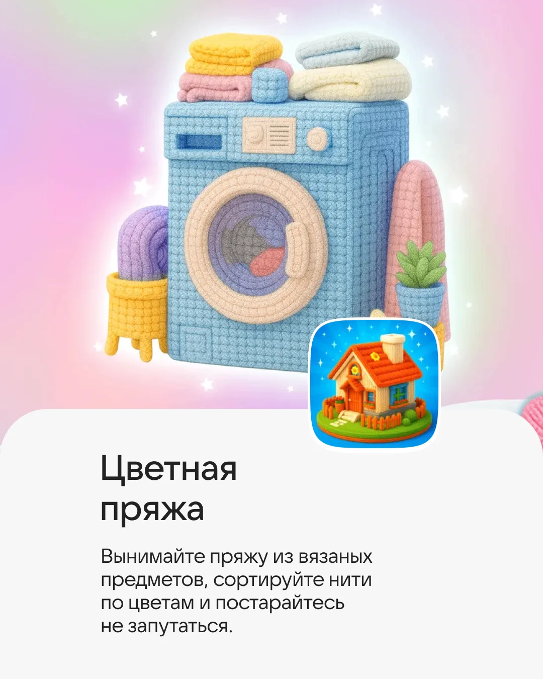 Обустраивайте уютную комнату, раскладывайте предметы по полочкам, стройте самую высокую башню и старайтесь не запутаться в пряже: