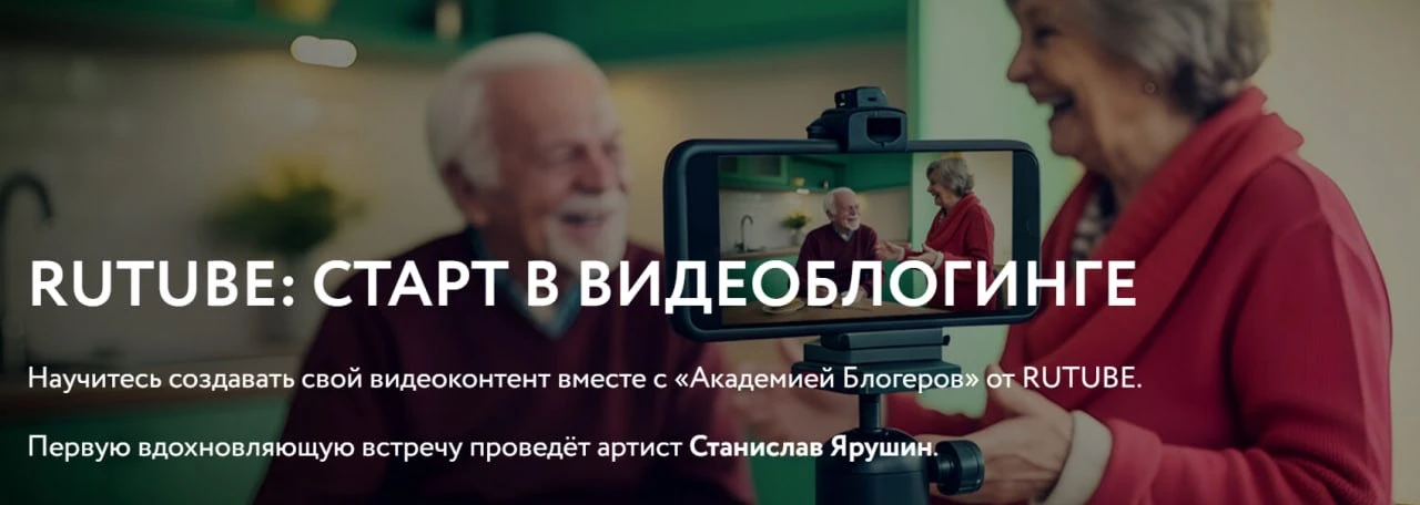 Я вместе с проектом «Московское долголетие» запускаю серию мастер-классов «RUTUBE: старт в видеоблогинге» для старшего поколения. Потому что интернет — это не только территория 20-летних с кольцевыми лампами. Это и место для всех, у кого есть история, голос и желание делиться.