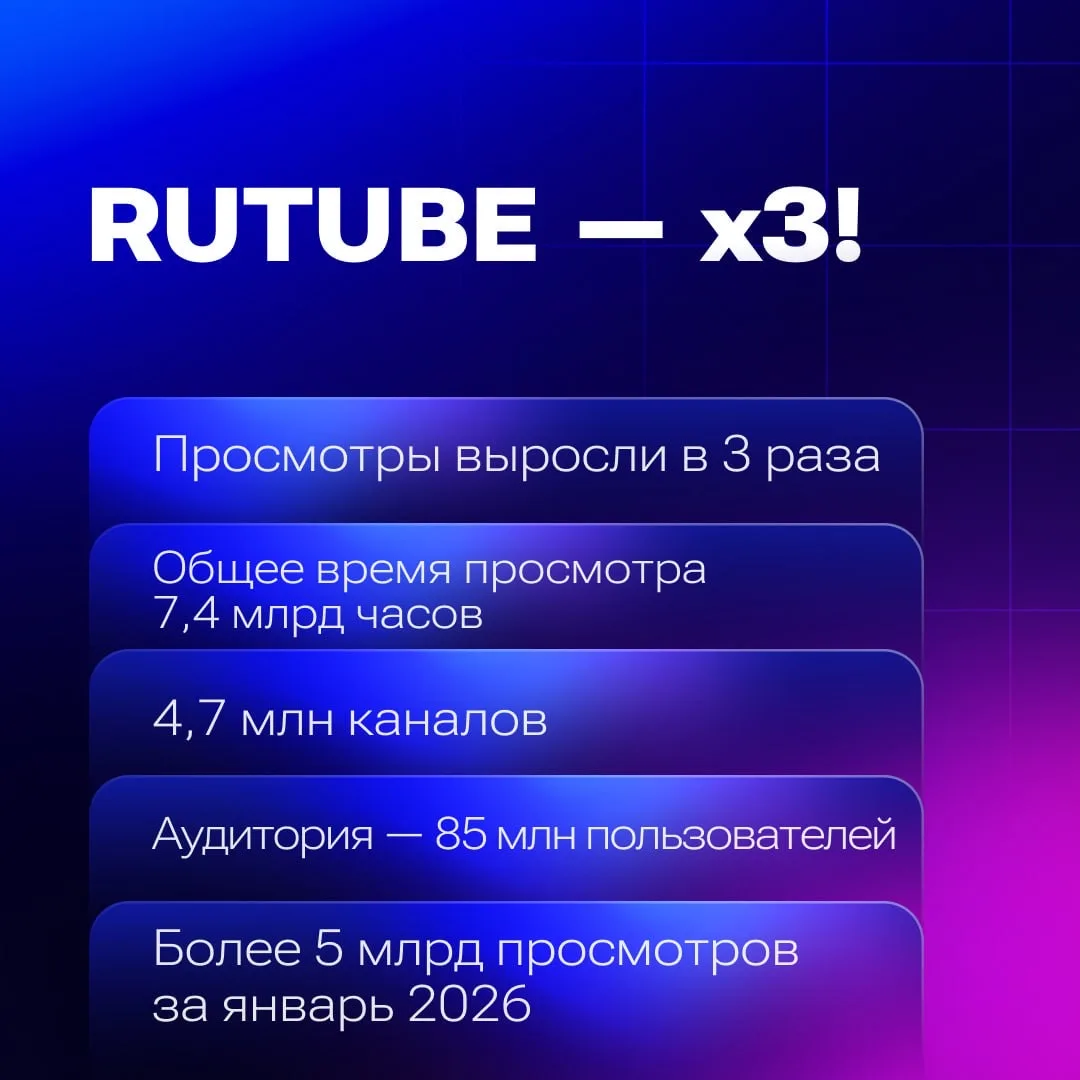 В 2025 году видео на RUTUBE посмотрели 52,6 млрд раз. В 3 раза больше, чем в 2024 году!