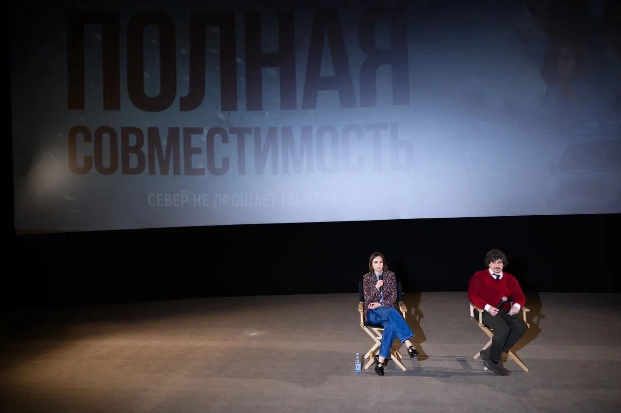 И главное: на показ приехали режиссёр Григорий Васильев и исполнительница главной роли Мария Лисовая. На большом экране показали первые две серии, зрители узнали знакомые заполярные пейзажи и тут же засыпали создателей вопросами.