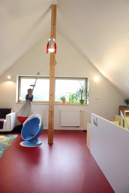 Дом и сад при нём рассчитаны на семью из двух взрослых и двух детей, особенно для летнего отдыха. Жилая площадь составляет 167 м2 и распределена между двумя уровнями. На верхнем уровне расположены две детские комнаты, которые можно легко объединить в три, а также одна общая комната и ванная. Во всех комнатах на верхнем этаже есть мансардные окна. Главная спальня и ванная комната находятся на первом этаже, как и просторная кухня-столовая и гостиная с высокими потолками, которую можно открыть, выйдя на деревянную террасу и в сад через большие раздвижные двери.