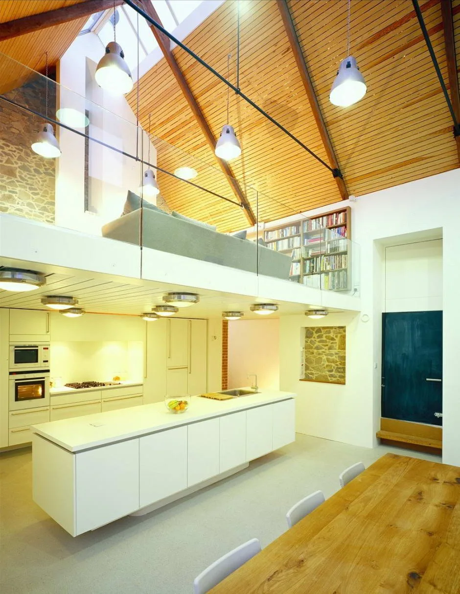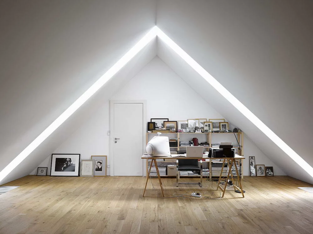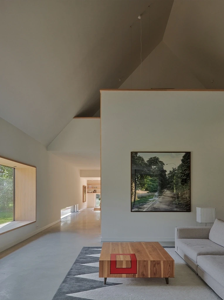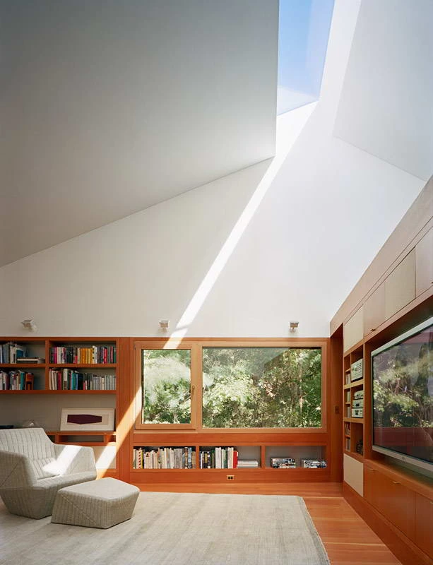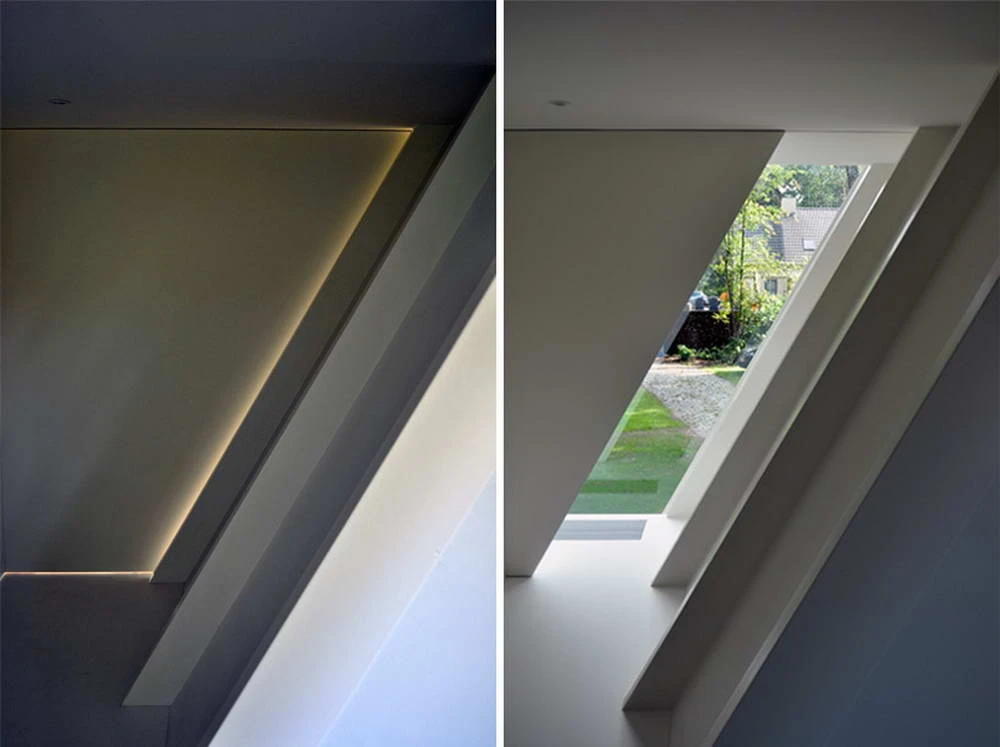 Вытянутые узкие окна на крыше нового дома неожиданно ярко проявились в интерьере, создавая эффектные световые разрывы.