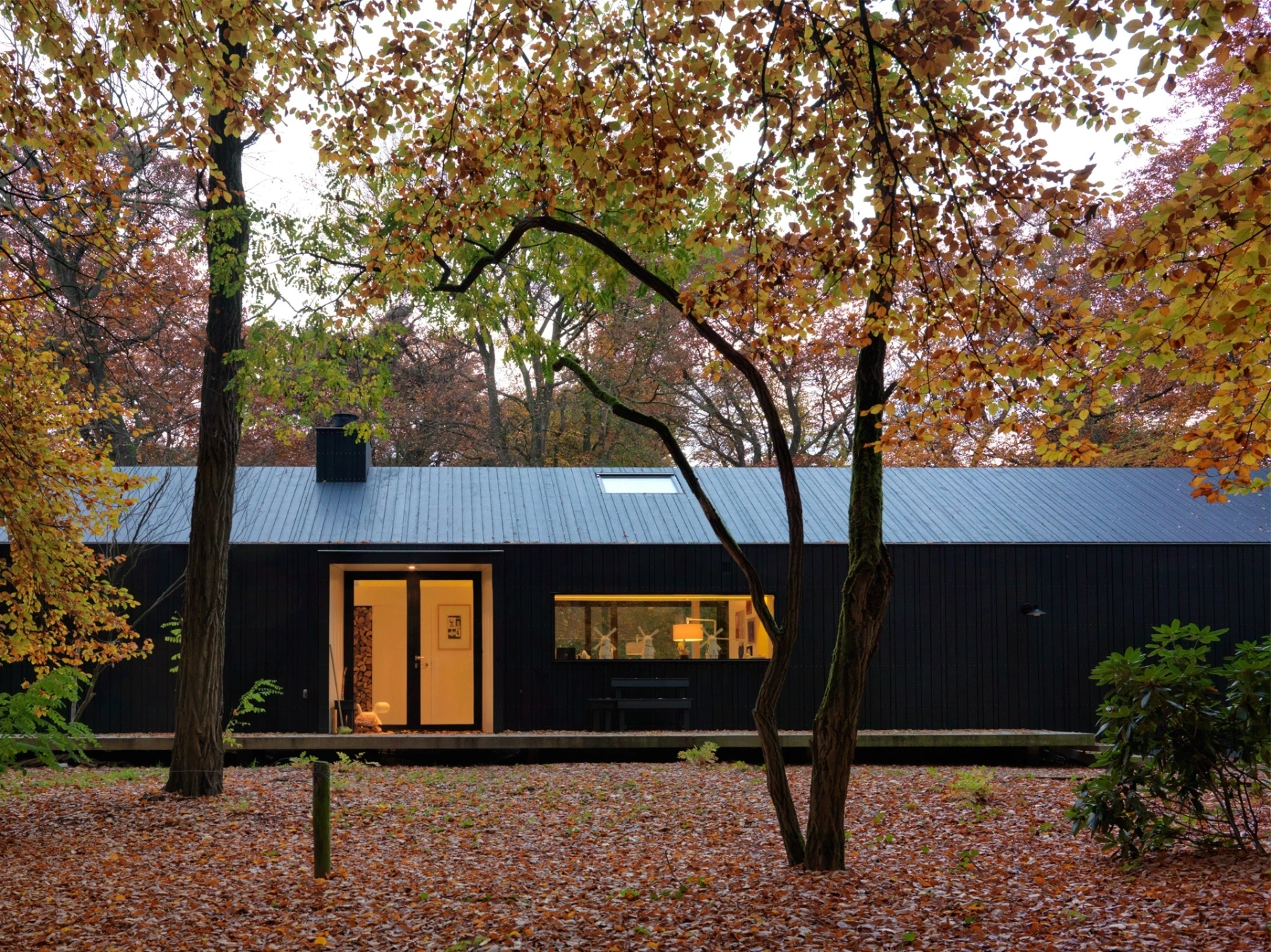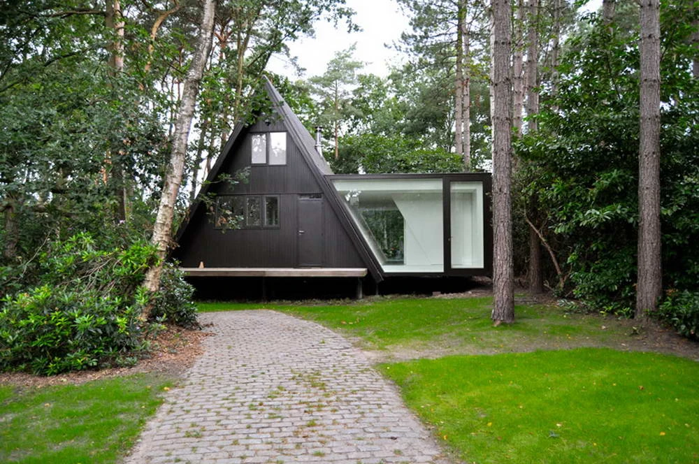 Небольшой дачный домик был реконструирован и расширен в лесном окружении.