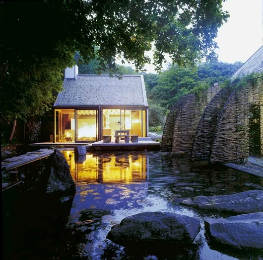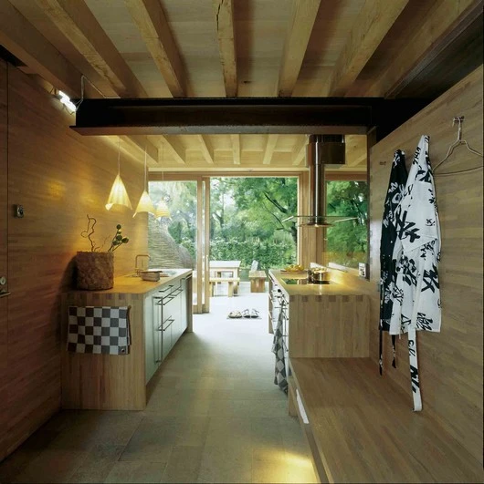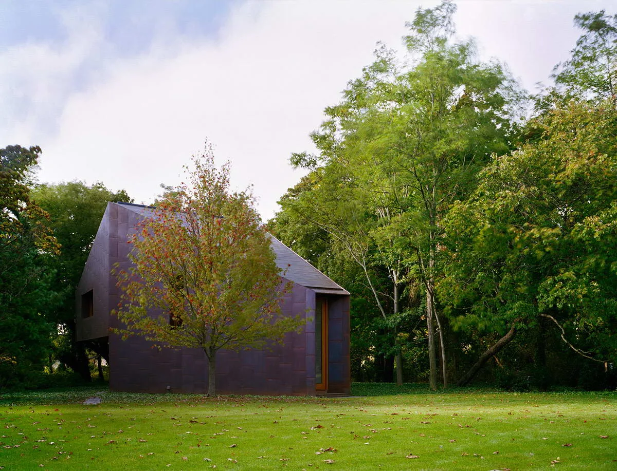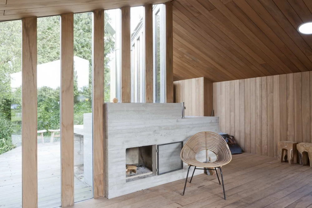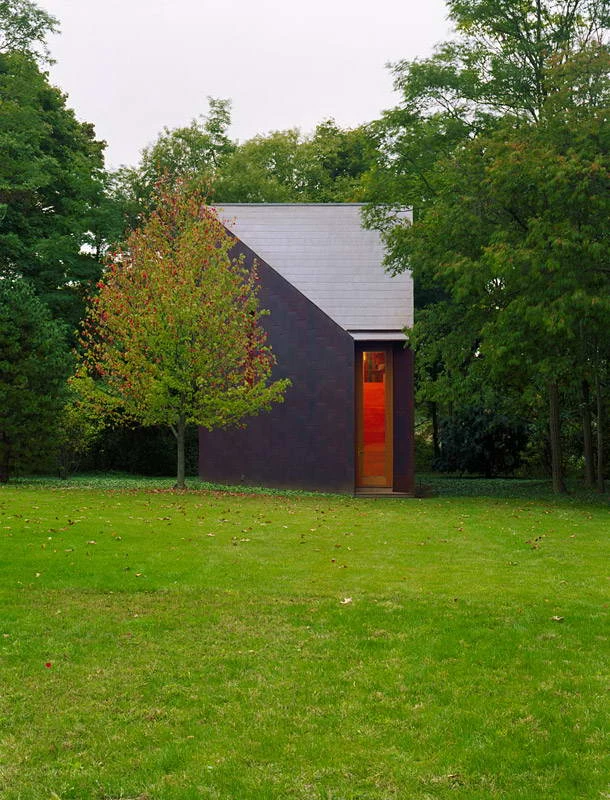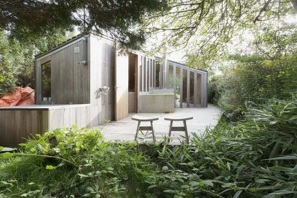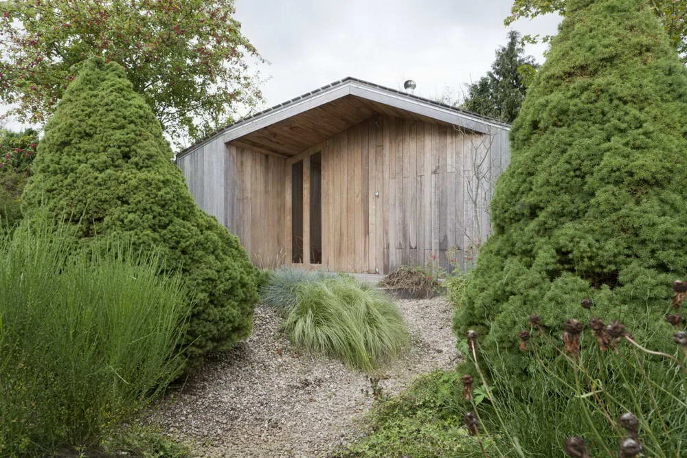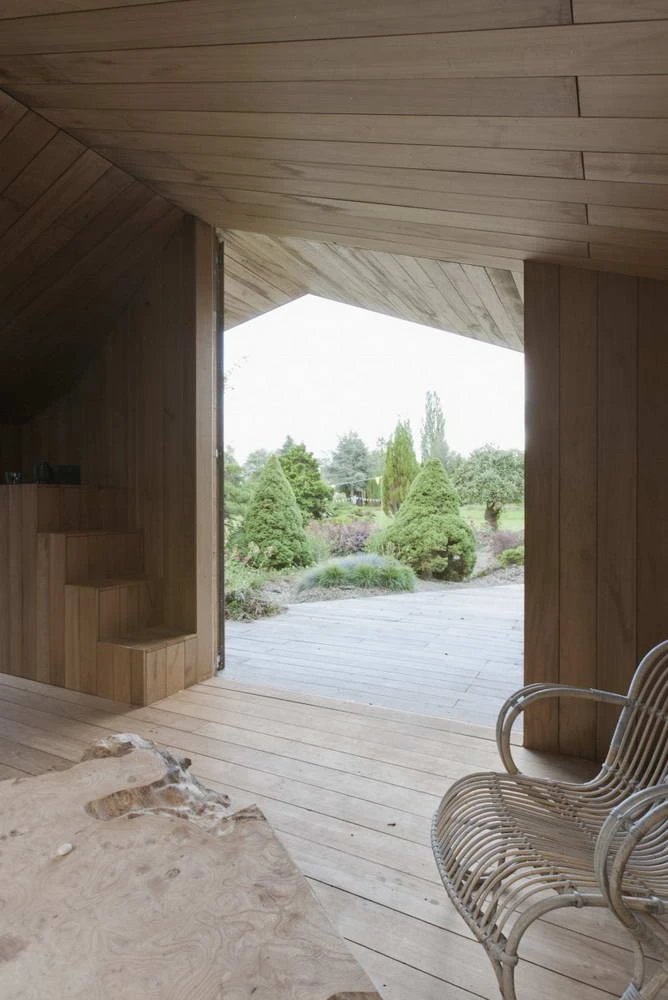 Этот небольшой дом был переделан под сауну и воплощает в себе ритуал бани и купания.