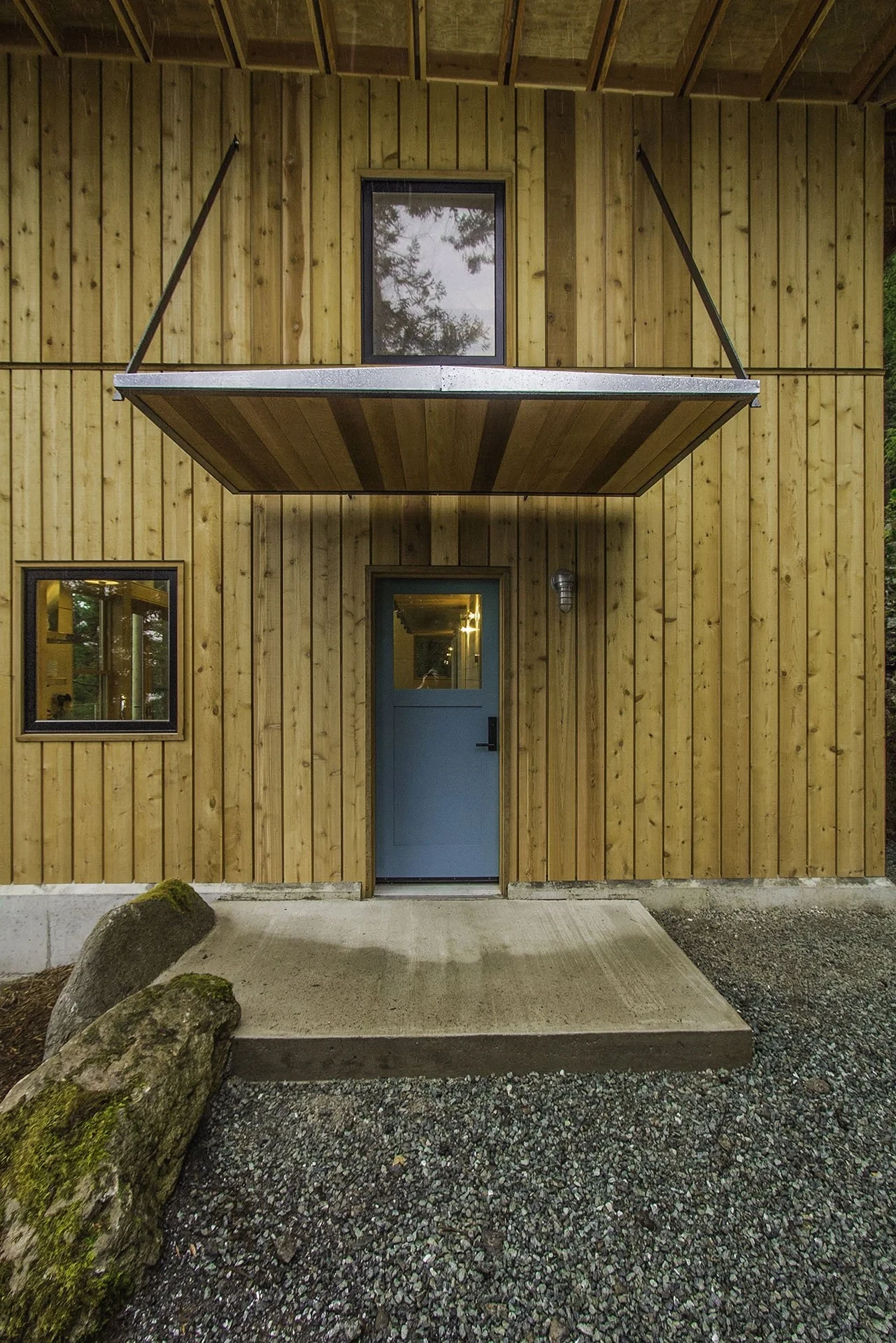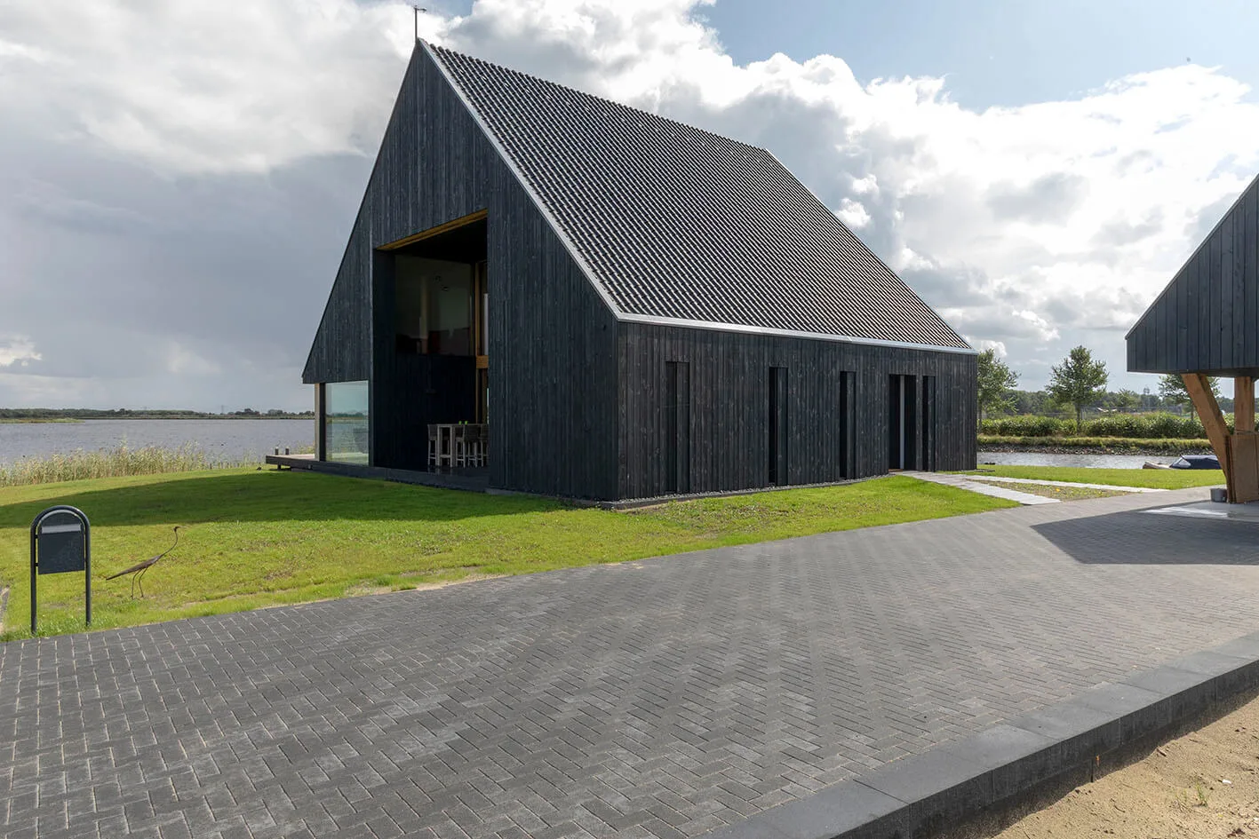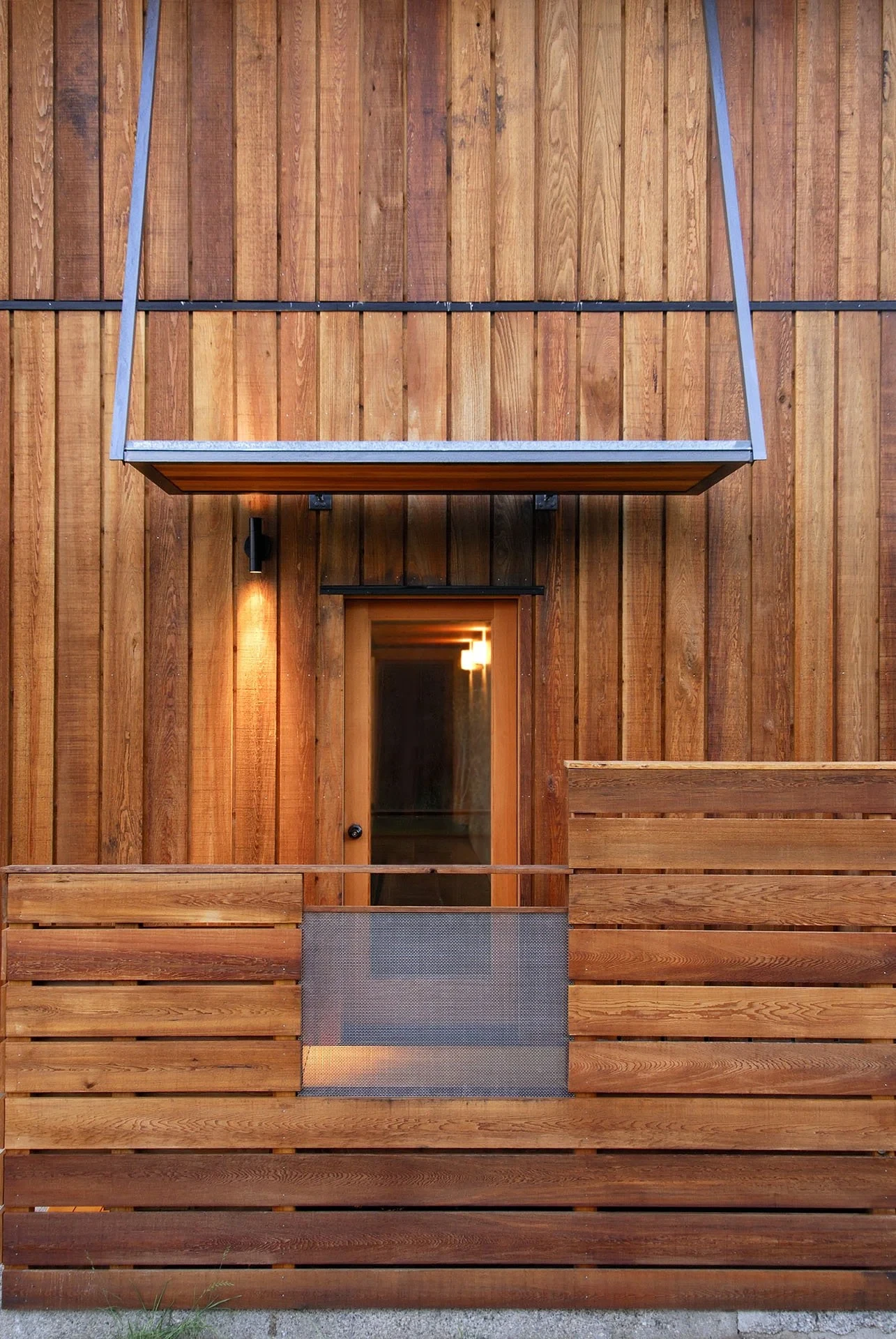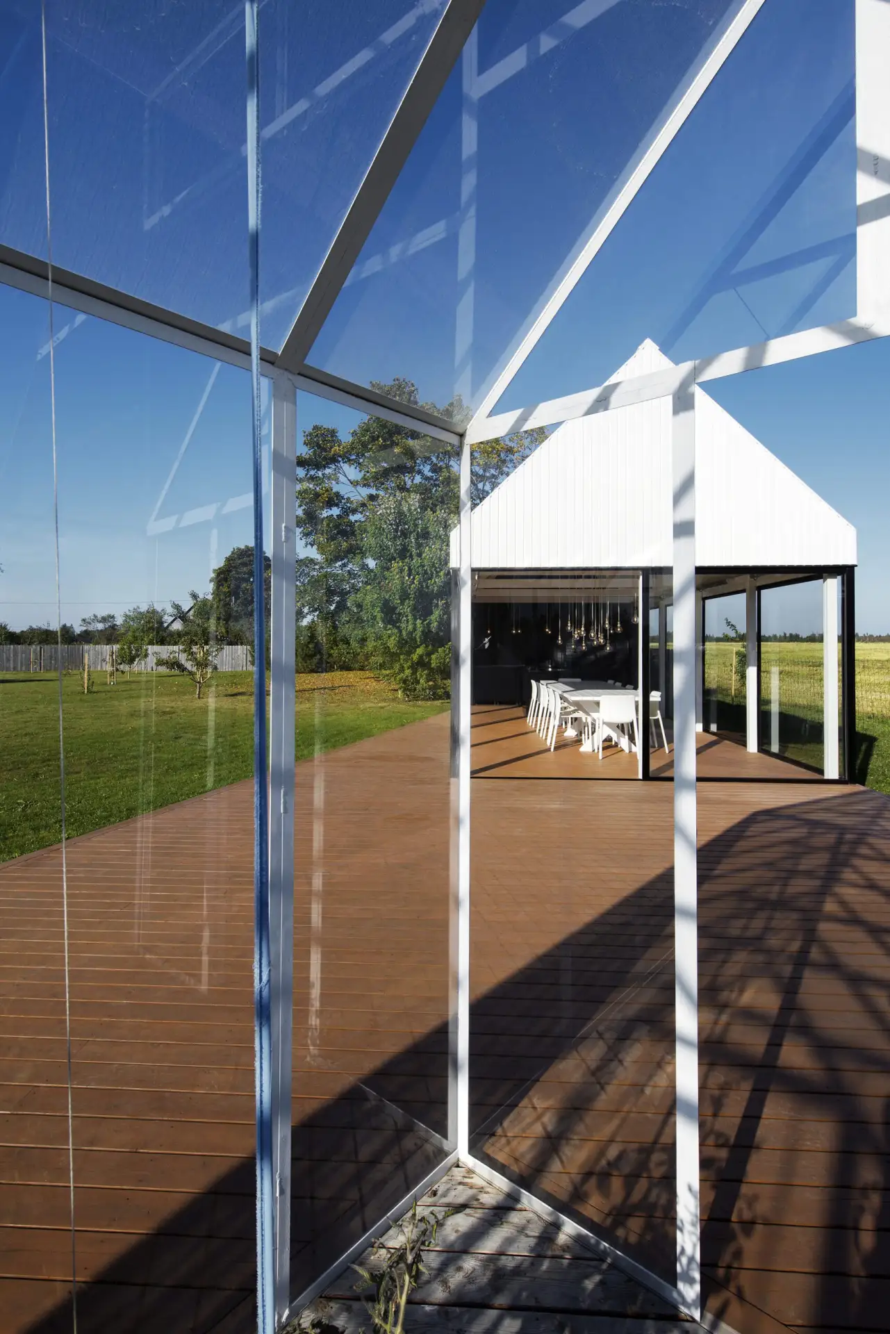 Дом практически скопировал образ существующего сарая, который тоже был обновлён и стал частью общей композиции. Два здания соединены друг с другом стеклянным переходом.