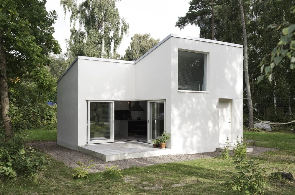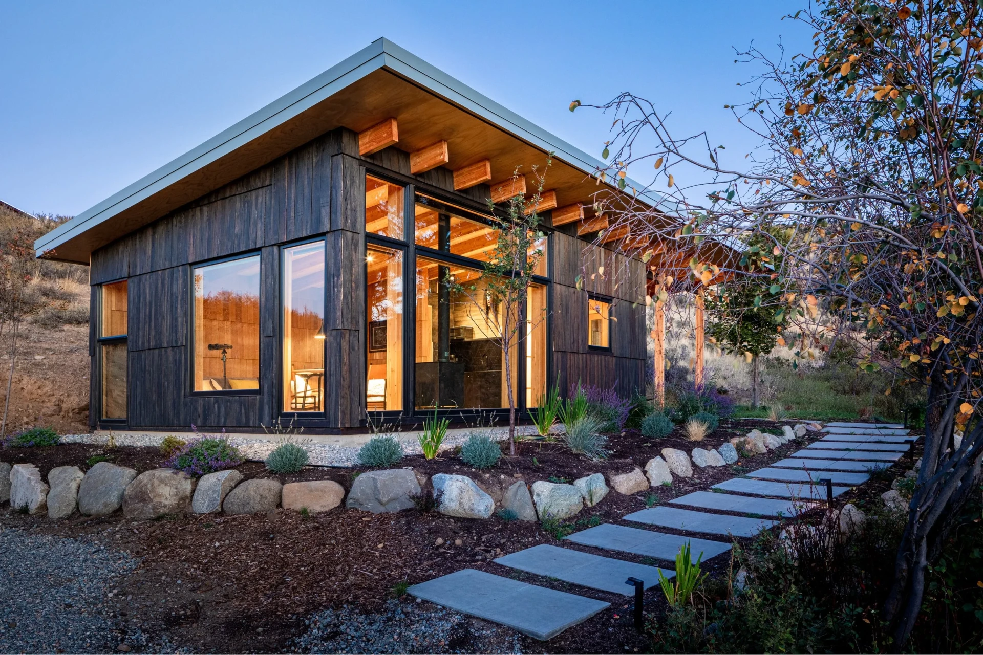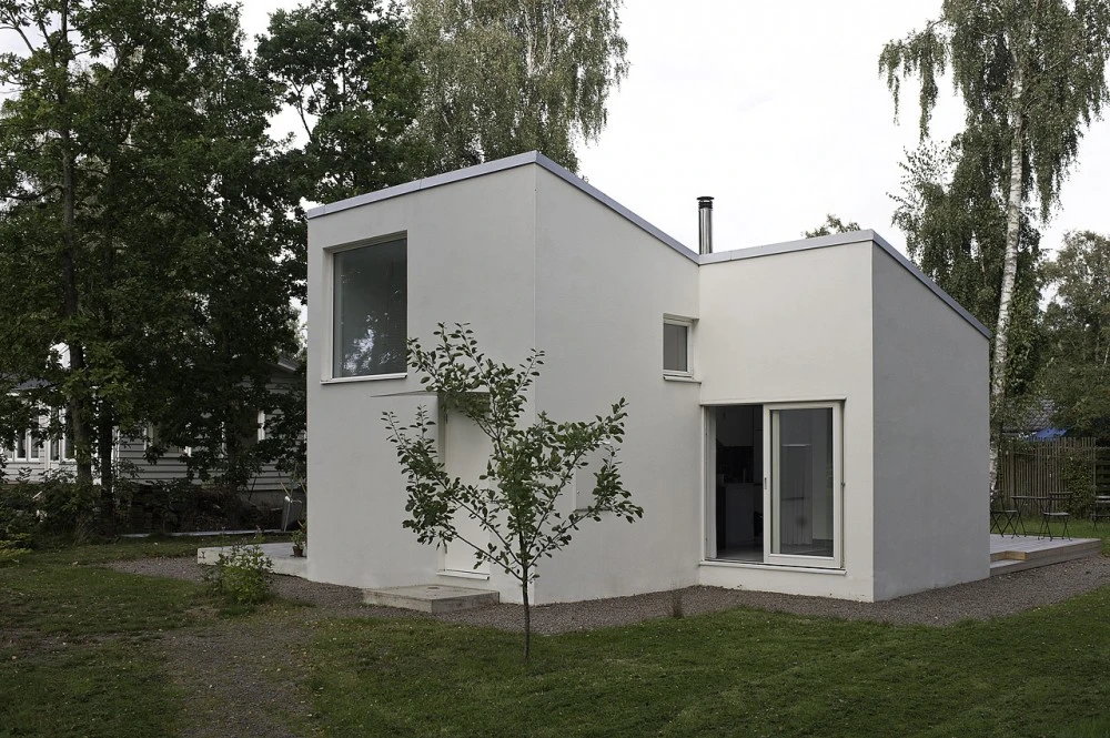 Этот отдельно стоящий вспомогательный жилой блок представляет собой гостевой домик.