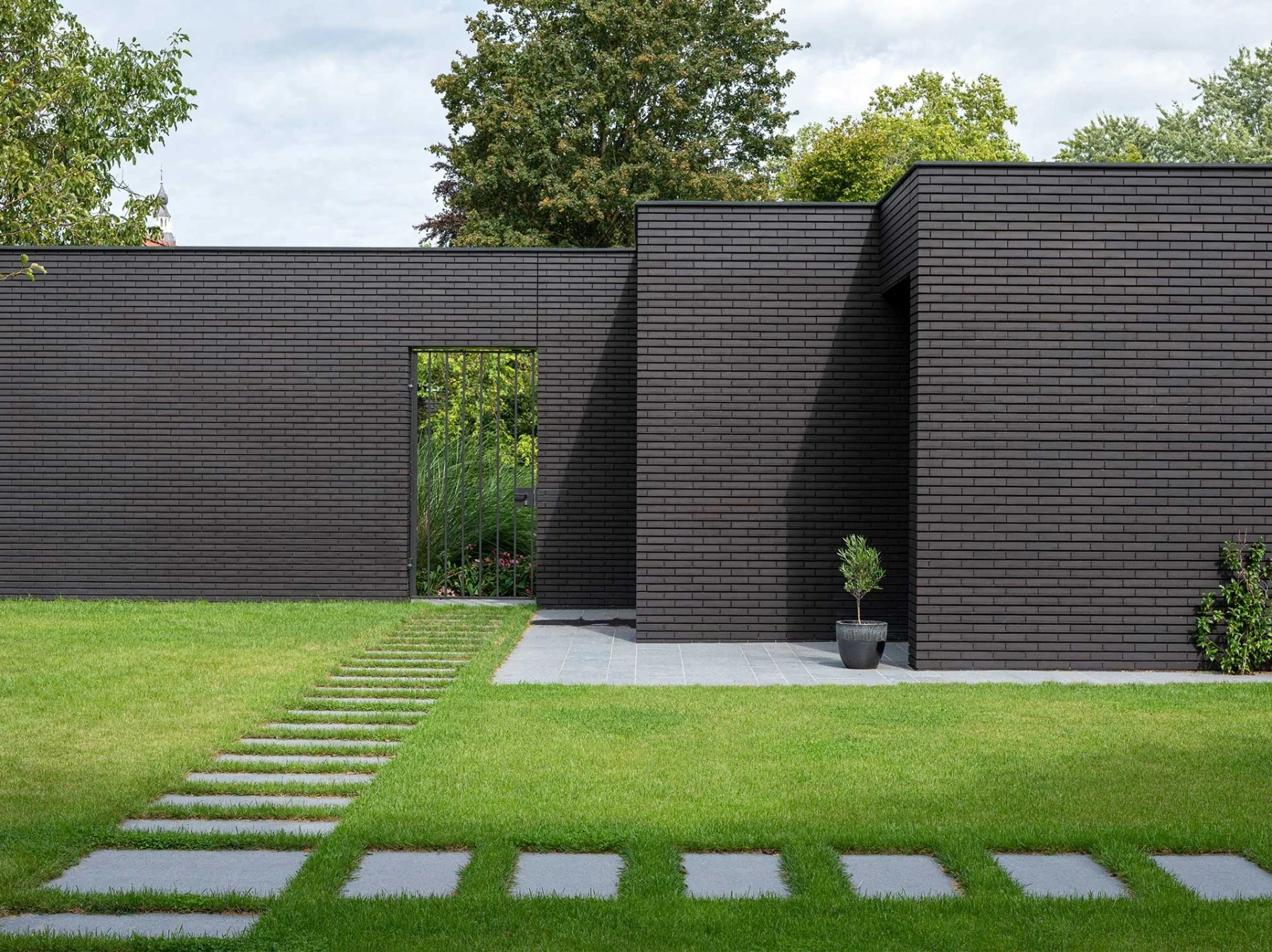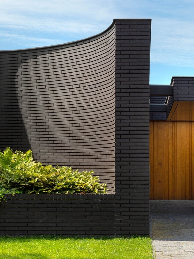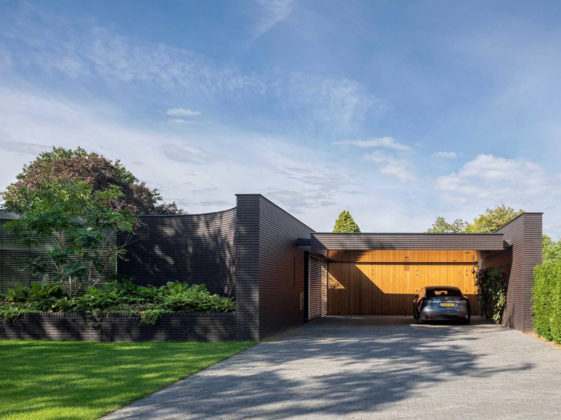 У дома распластанная, открытая во двор планировка в виде полукарэ, снаружи же дом плотно закрыт.