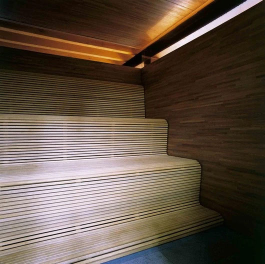 Кроме сауны здесь есть комнаты для отдыха и переодевания, а также бельевая.