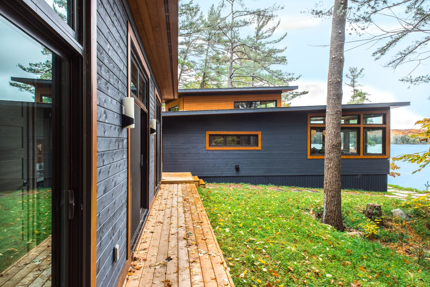 Коттедж почти не виден с воды, но из него открывается прекрасный вид на озеро. Внешний вид коттеджа выдержан в простых традициях: скатные крыши, веранды, выступающие концы стропил, деревянный сайдинг и деревянные окна. При этом в коттедже есть все необходимое для современного человека: площадка для барбекю, большая терраса на берегу озера и крытая веранда.