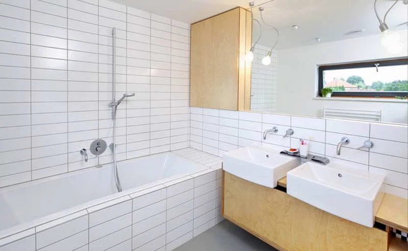 Дом состоит из двух соединенных между собой частей: одна предназначена для хозяев, а другая — для взрослых детей и внуков, которые приезжают в гости. Такое расположение позволяет использовать дом в повседневном режиме, а также принимать у себя большую семью, не занимая при этом слишком много места.