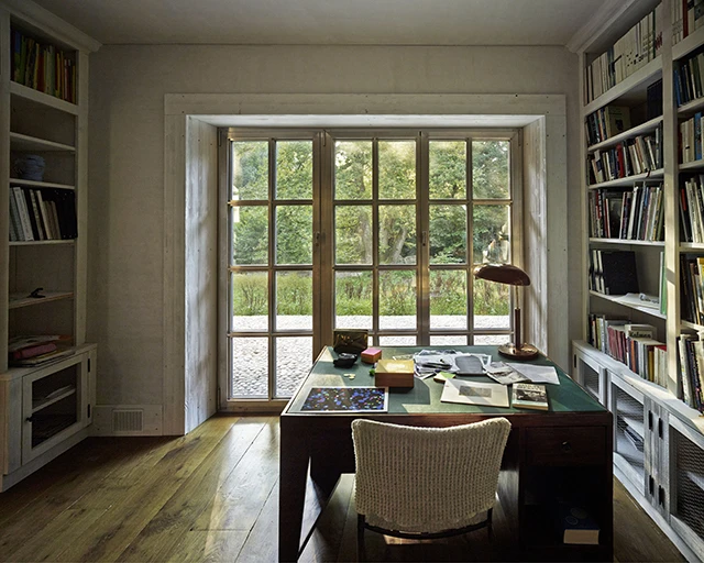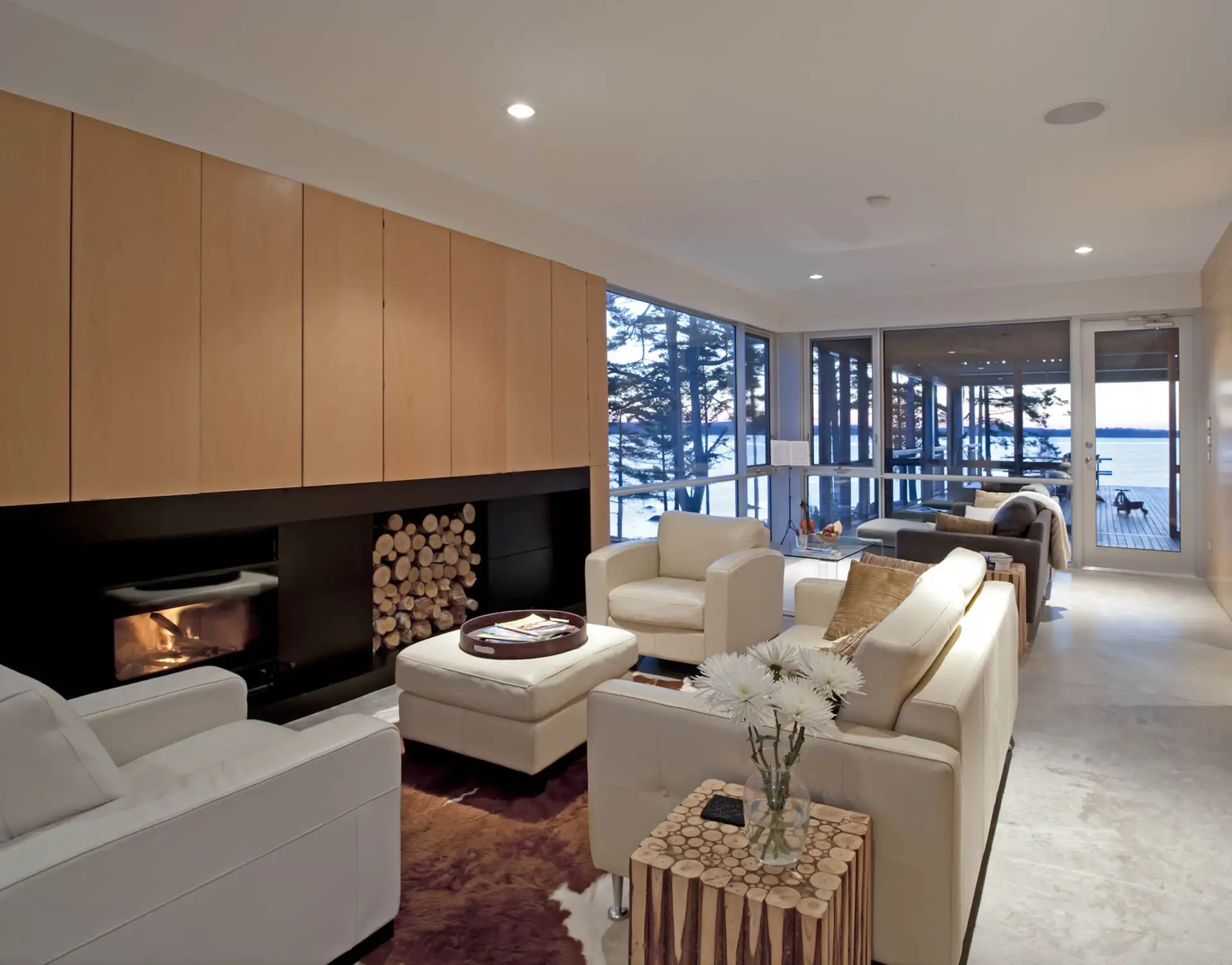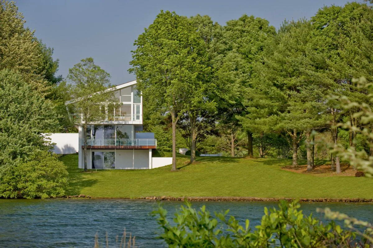 Комплекс, расположенный на полуострове, вдающемся в озеро, отвечает потребностям большой семьи и процветающего творческого бизнеса.