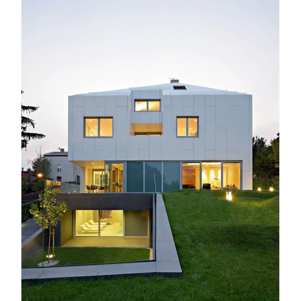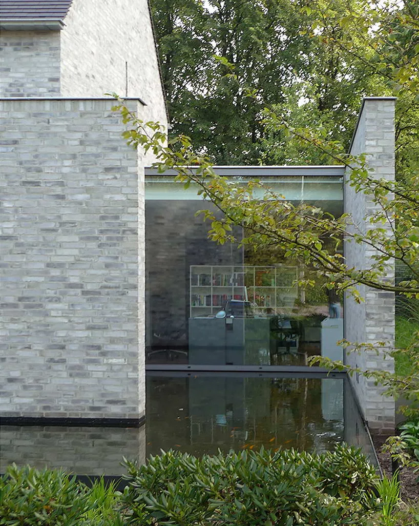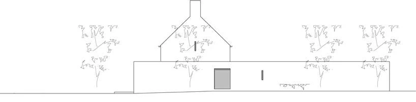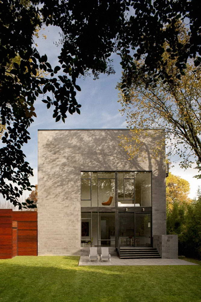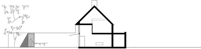 Домик состоит из двух объемов – видимой воздушной, который читают с улицы и скрытого подземного видимой со двора. Верхний (видимый) объем представляет собой базу для повседневной жизни, в то время как нижний (скрытый) обновление то есть сочетает в себе дополнительные возможности.