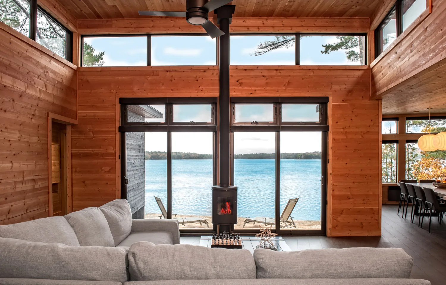 Из трёх спален на нижнем этаже открывается прямой вид на озеро.