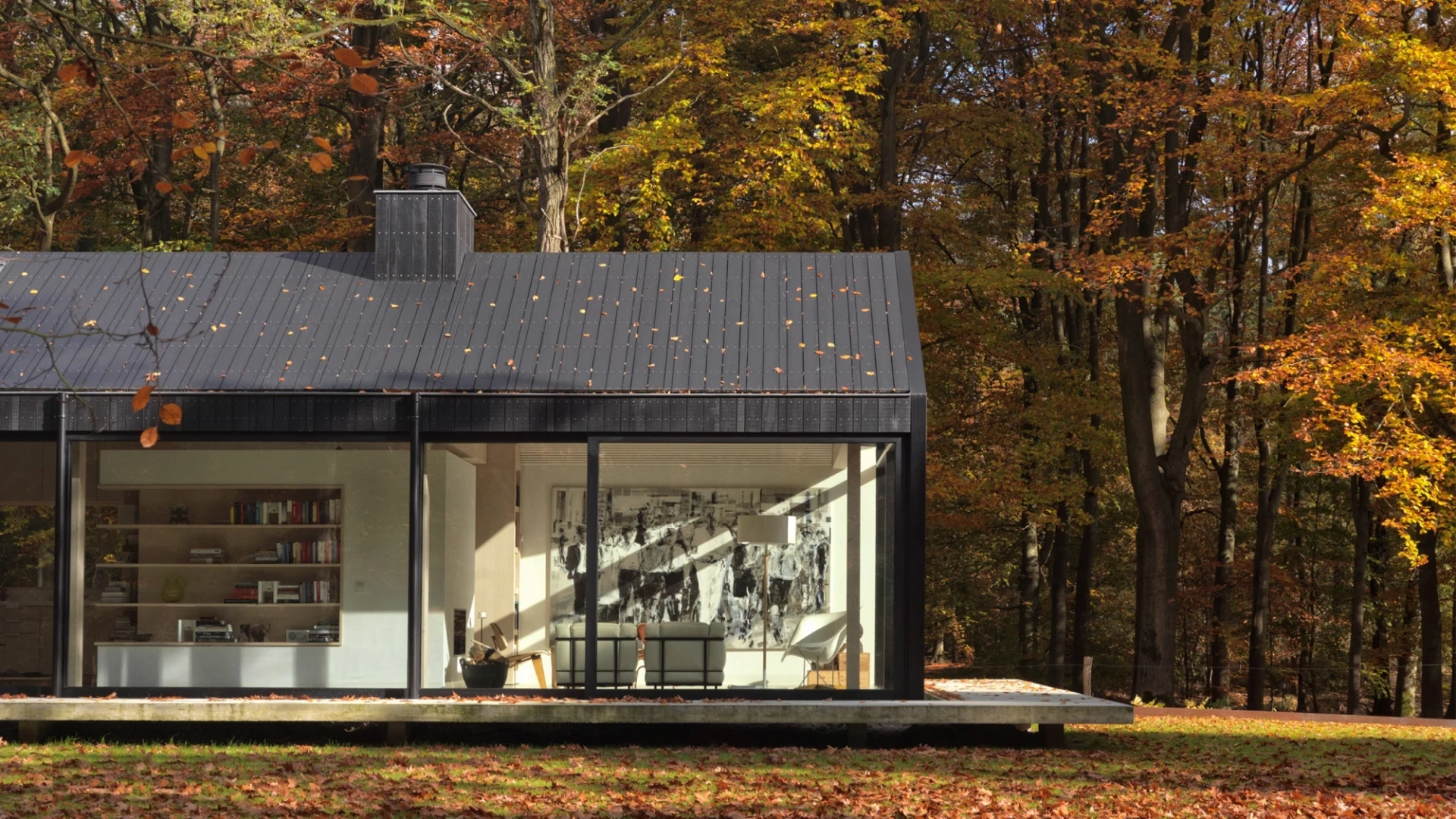 Этот современный дом спроектирован с учетом уединенности, особенностей климата и открывающихся видов. Закрытый внутренний двор четко разграничивает общественное и частное пространство, а продуманные проемы обрамляют луга и окружающий лес.