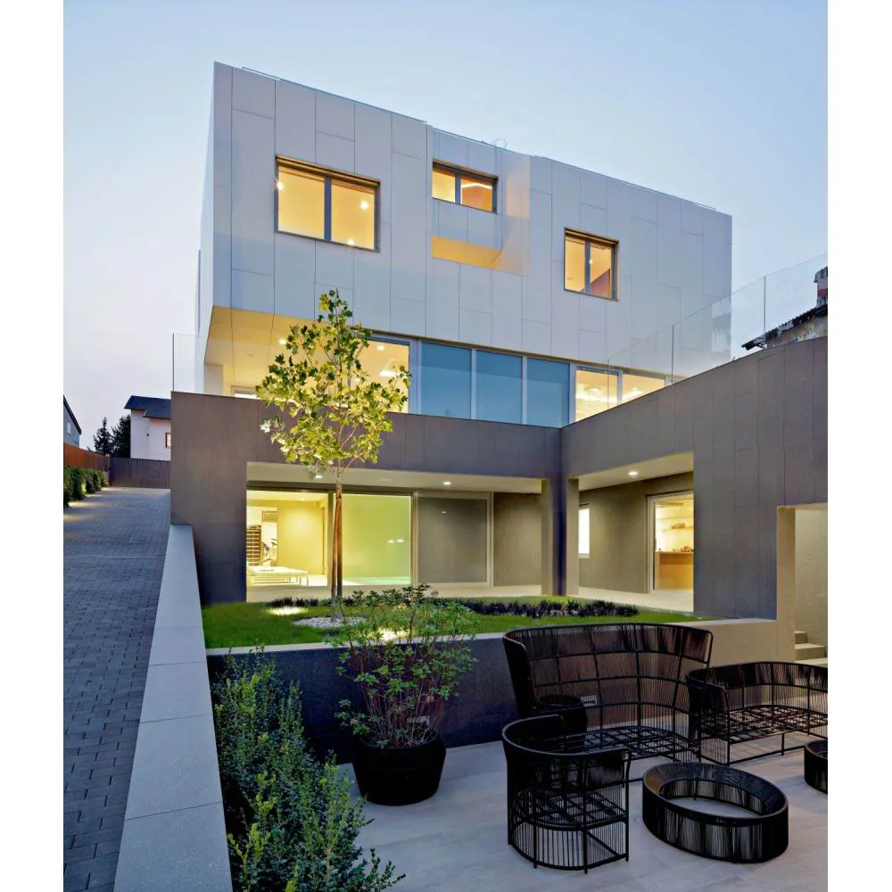 Был реализован линейный объем здания длиной 27 метров, в котором все жилые функции были перенесены на длинную ленту, проходящую через сад. Фасад, выходящий на проспект, более закрытый, фасад со стороны сада в основном открыт.