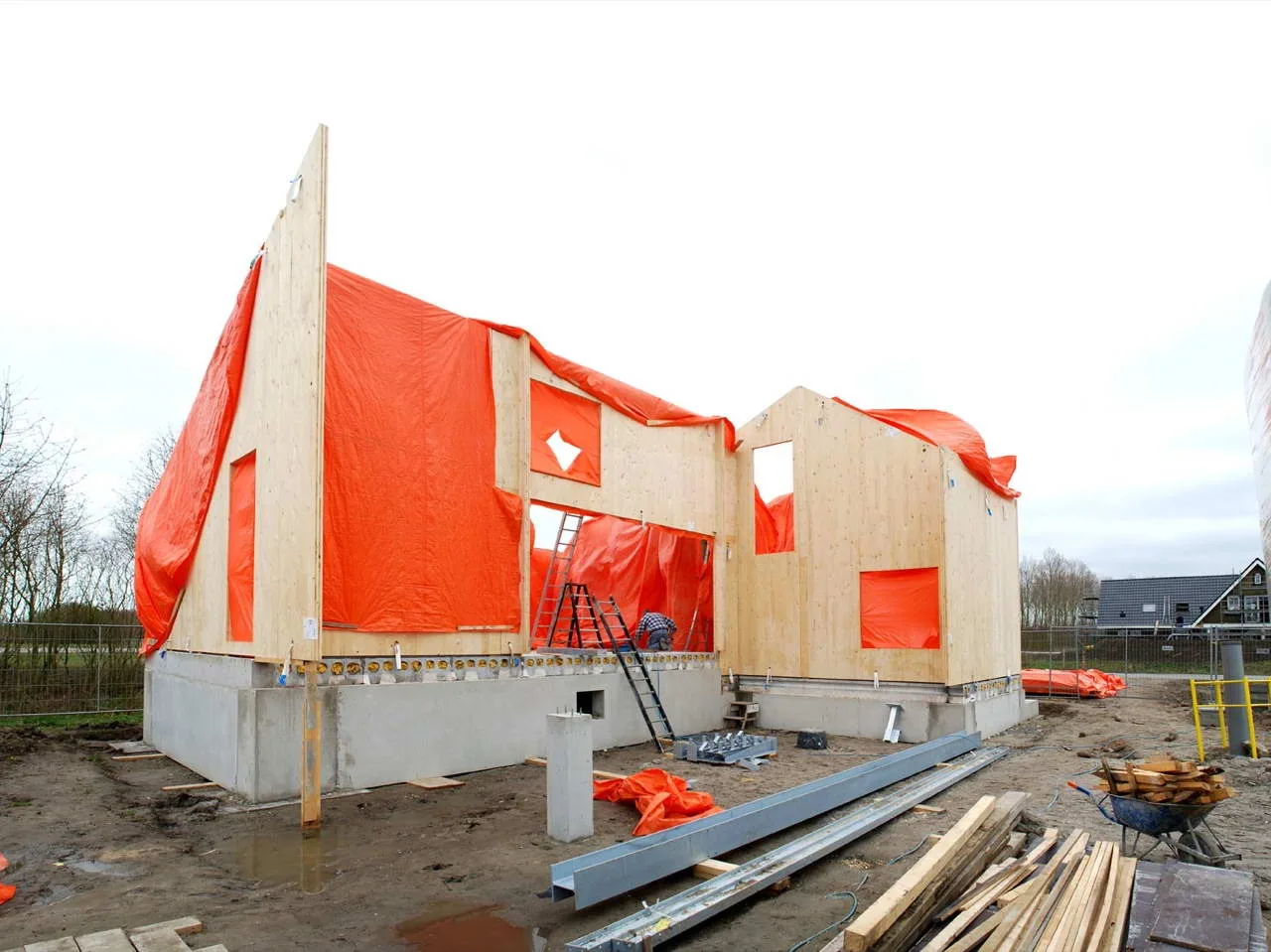 Домик практически полностью построен из деревянных конструкций и отделан ламинированной древесиной, обтянутой снаружи чёрной резиновой кожей.
