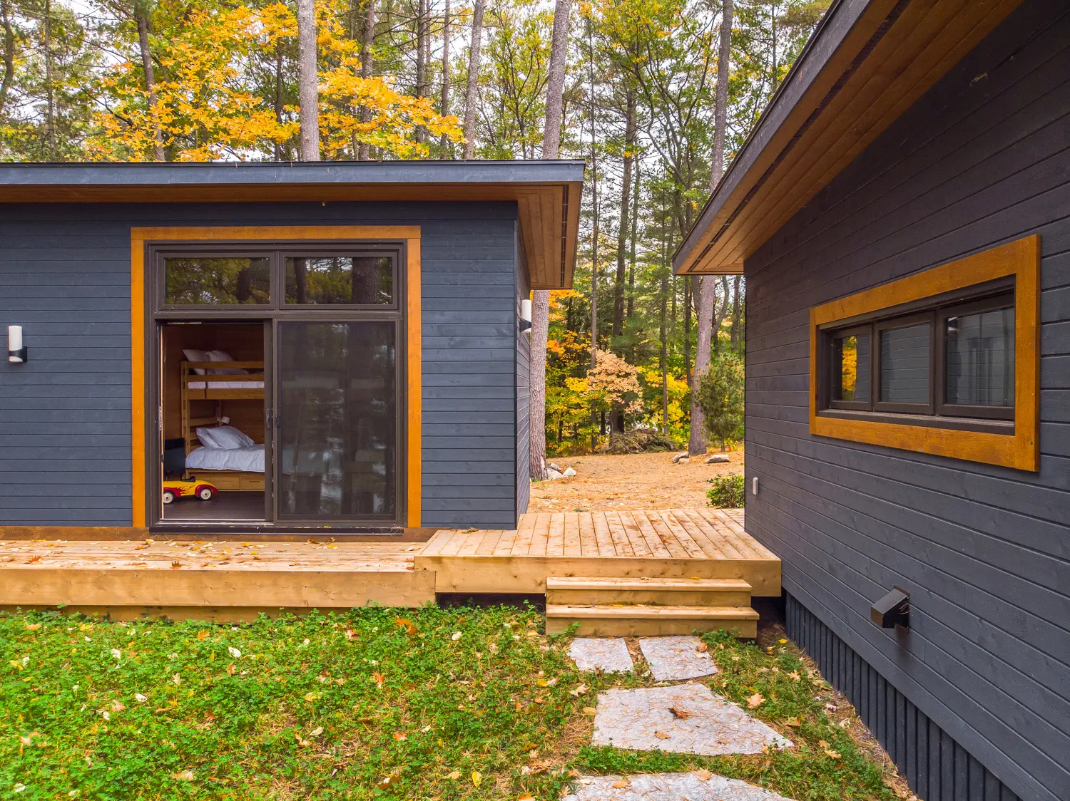 Домик расположен в сосновом бору. Несмотря на то, что дом рассчитан на проживание пары, в нем достаточно места для друзей, детей и внуков.