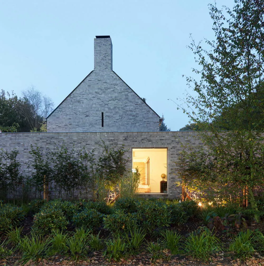Это загородный дом из серого кирпича предназначен для проживания одной семьи.