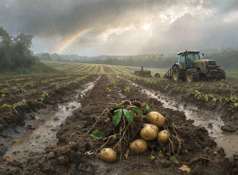 По оценке главы фирмы Шаига Мамедова, в поле осталось около 3,3 тыс. тонн картофеля. Причина: сложные погодные условия – техника не смогла выйти 🌧.