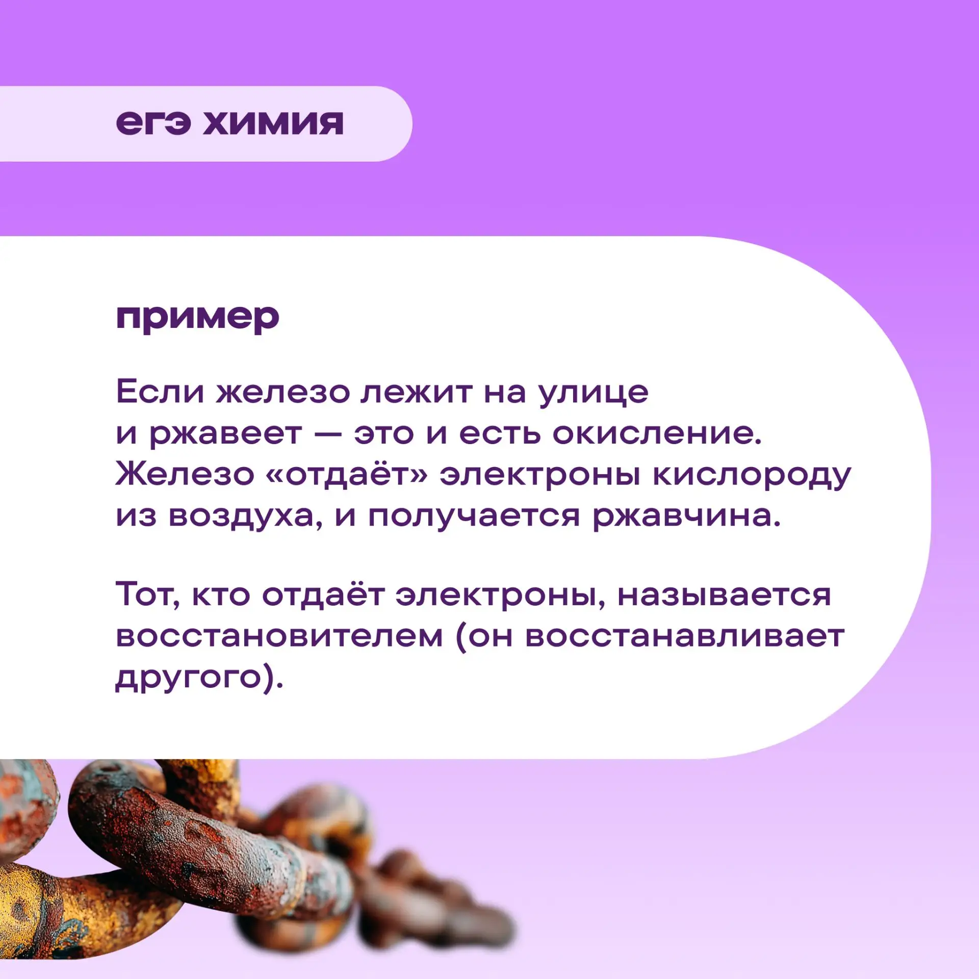 🤓 Если просто, это химические реакции, в которых одни вещества забирают себе электроны, а другие их отдают. Примерами таких реакций будут ржавление железа, горение дров, работа батарейки и многое другое.