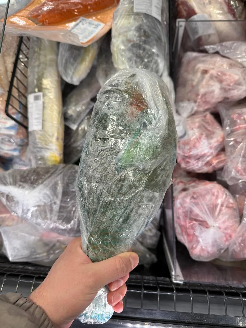 P.S.: Мы сначала не поверили, что рыба есть в наличии и на всякий случай проверили морозильник. Всё на месте. А яркие краски рыбы-попугая и махи-махи видно даже через плотный слой целлофана.