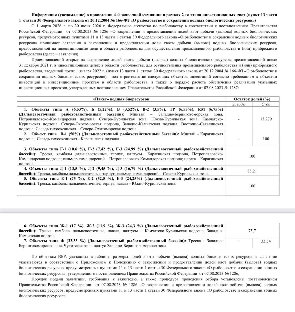 Росрыболовство анонсировало новые заявочные кампании по распределению инвестиционных квот первого и второго этапов: